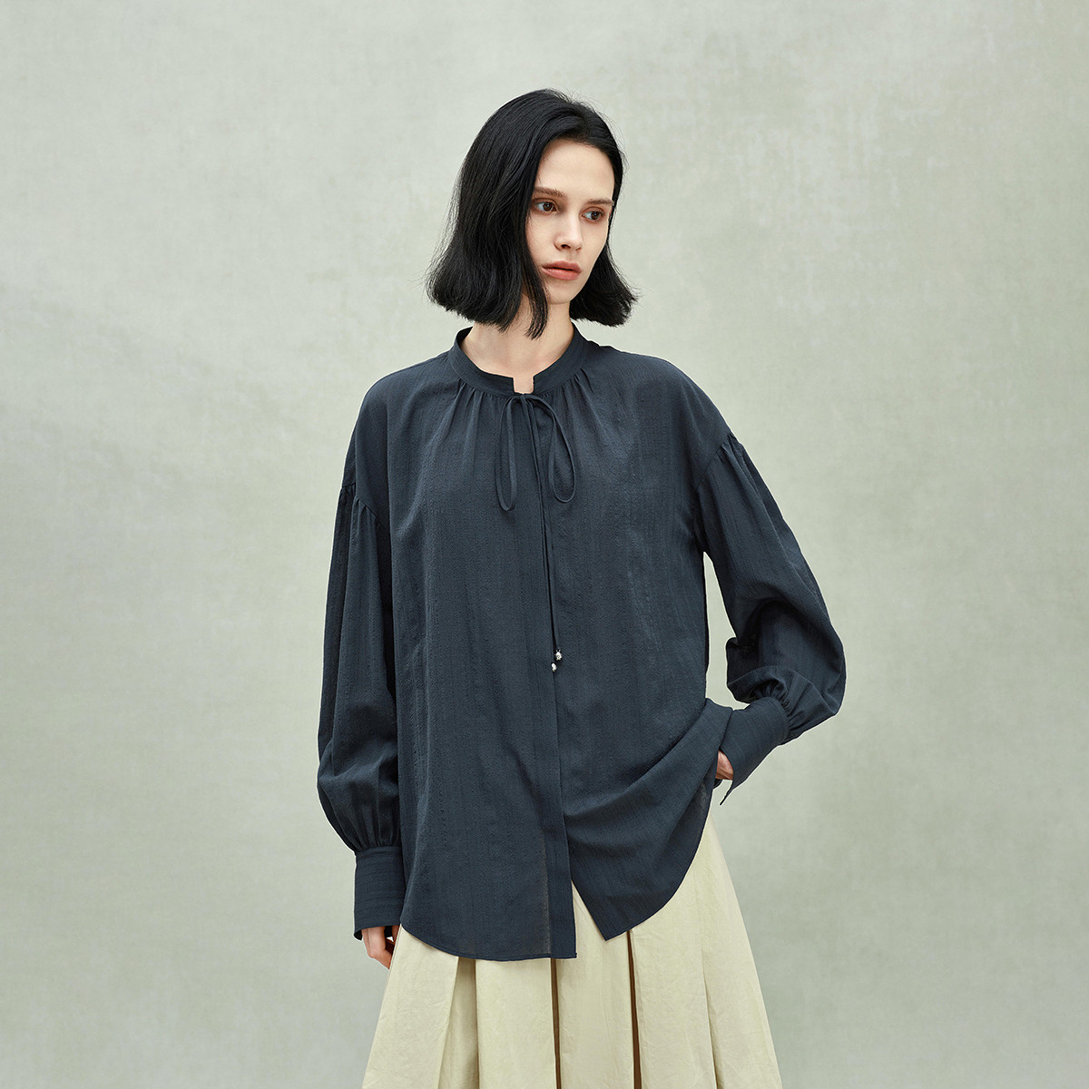 【翻领衬衫】2025夏季优雅气质纯色设计长袖衬衫女 534042