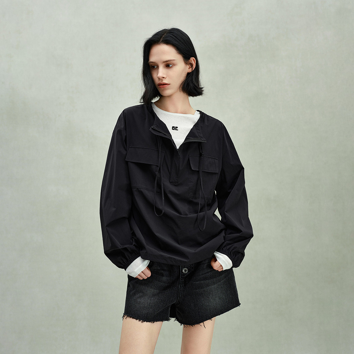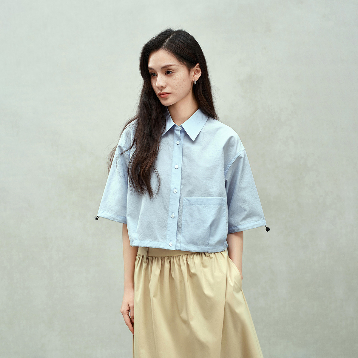限定系列OCH.春装 抽绳宽松短上衣工装风休闲短袖衬衫女 014799