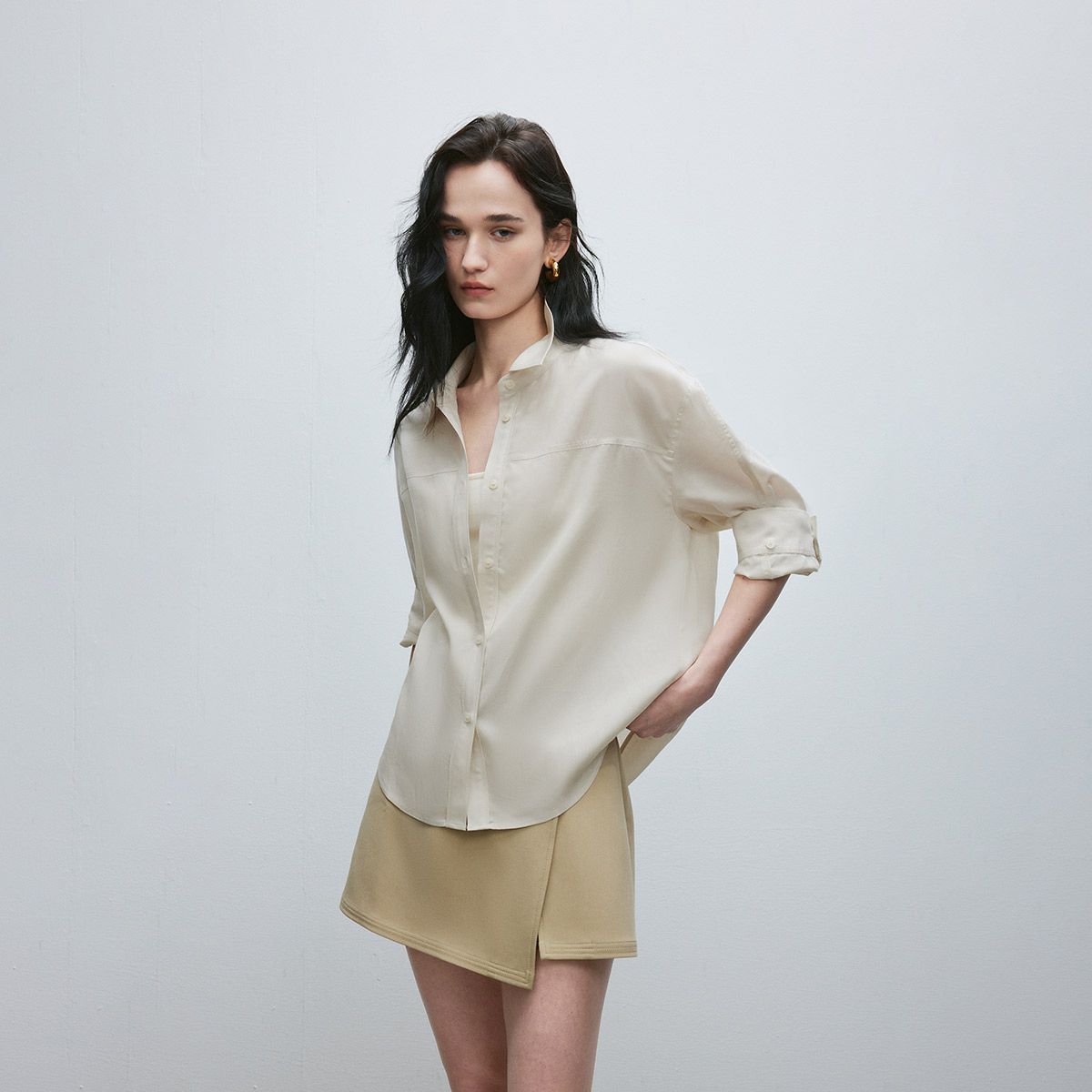 【挽袖扣子|精致干练】25夏季含莱赛尔纯色亲肤宽松落肩衬衫女 006554
