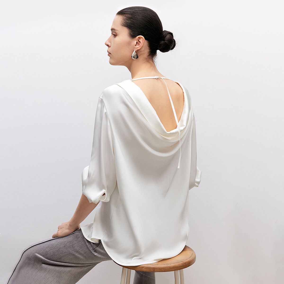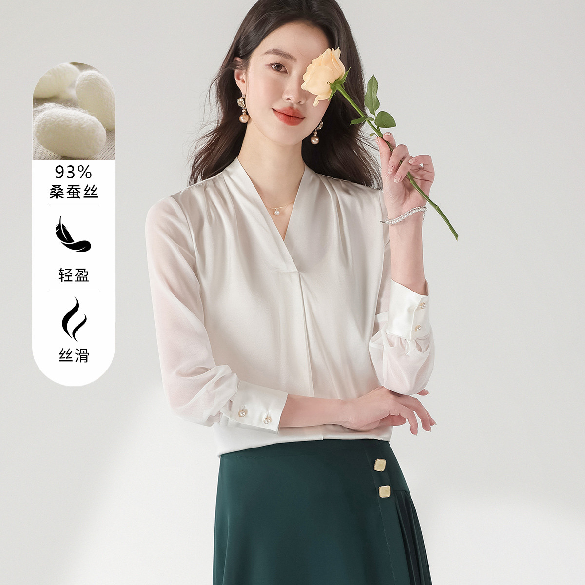 【桑蚕丝】V领纯色桑蚕丝衬衣舒适休闲长袖女式衬衫气质夏款上衣 935827