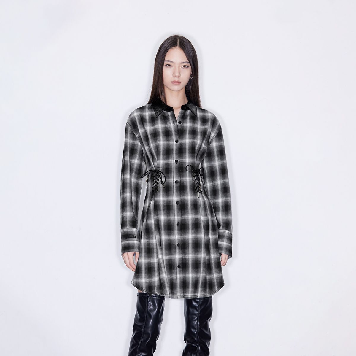 【绑带格纹】夏季气质通勤修身长款衬衫女 289050