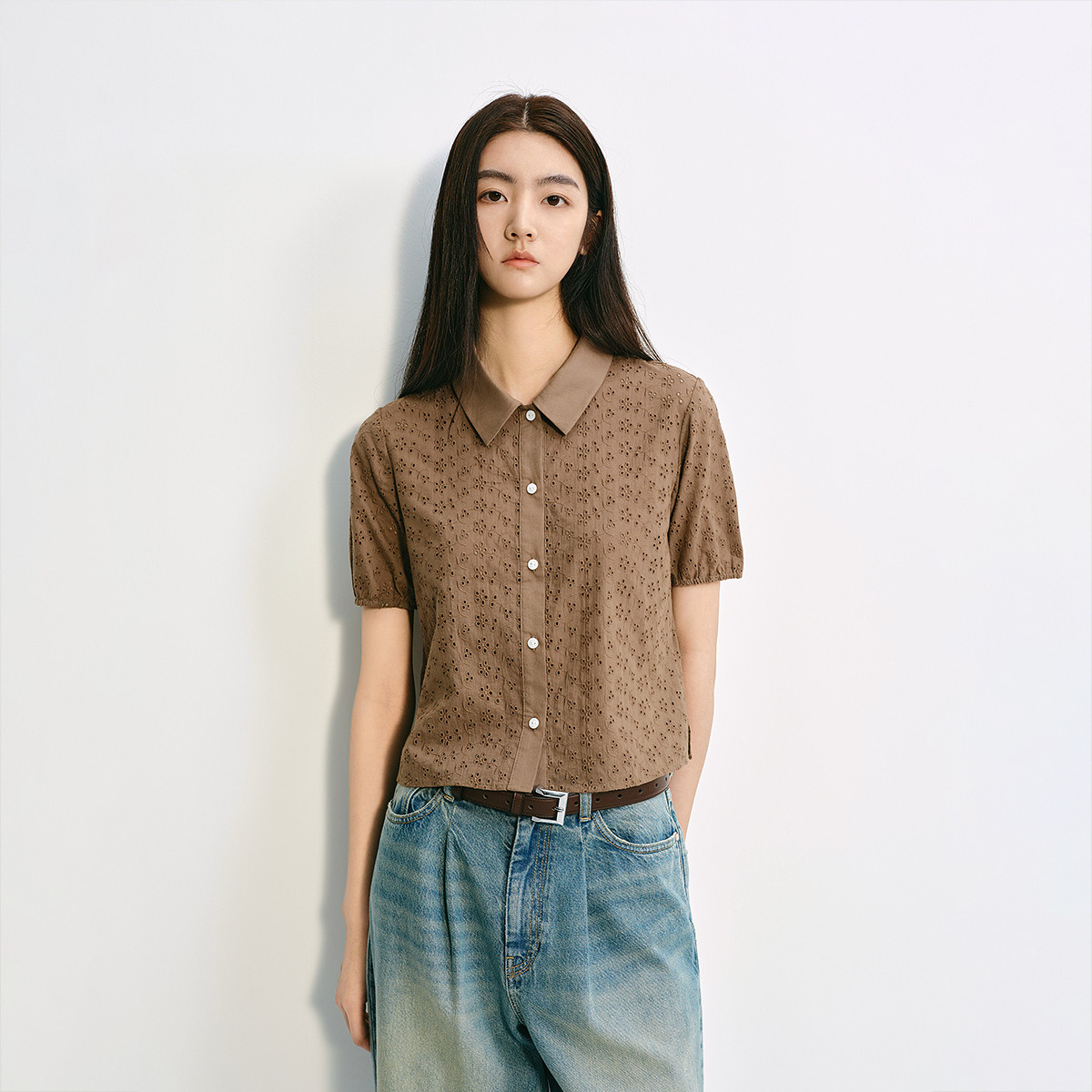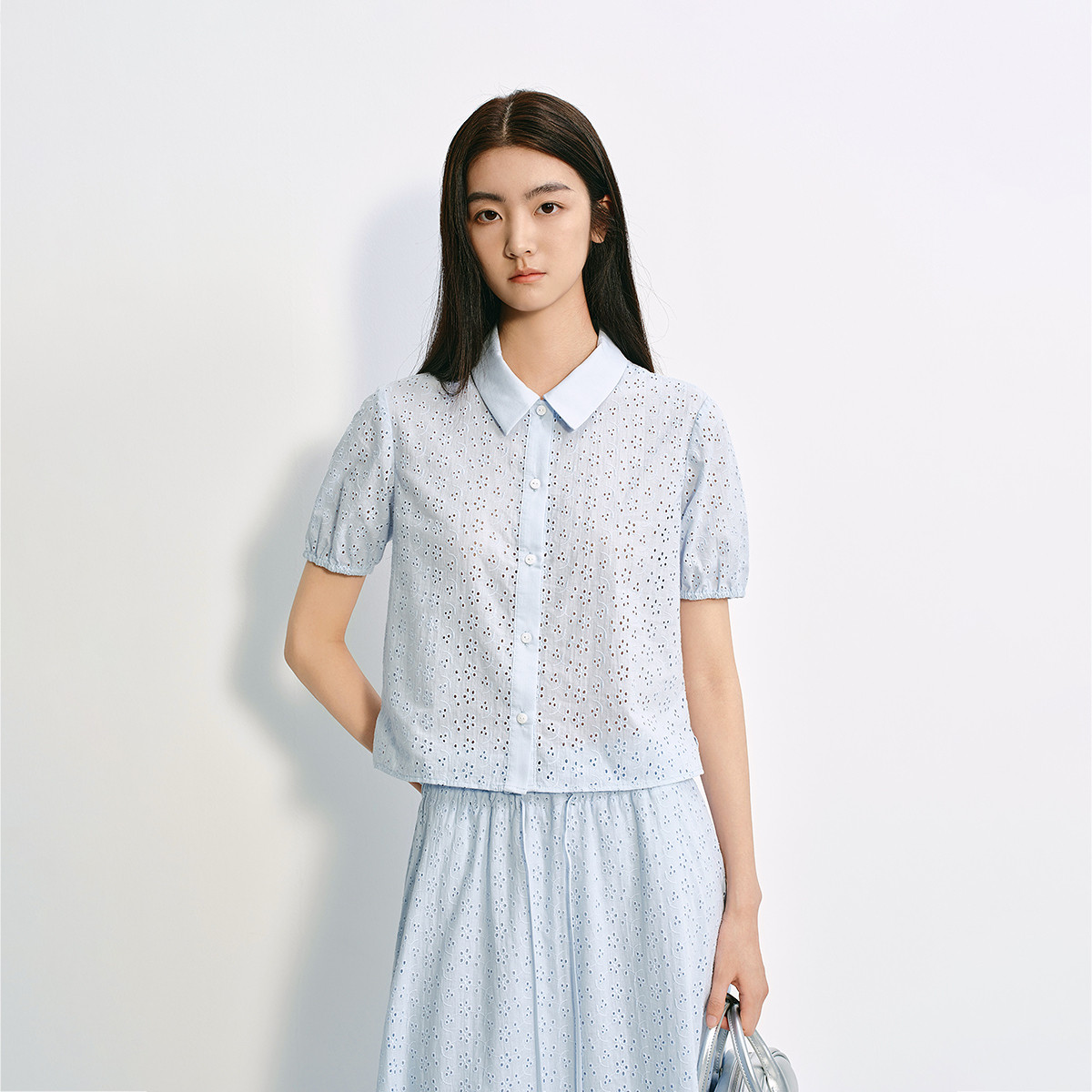 限定系列OCH.夏装 上衣刺绣镂空透气100%棉短袖衬衫女 341455