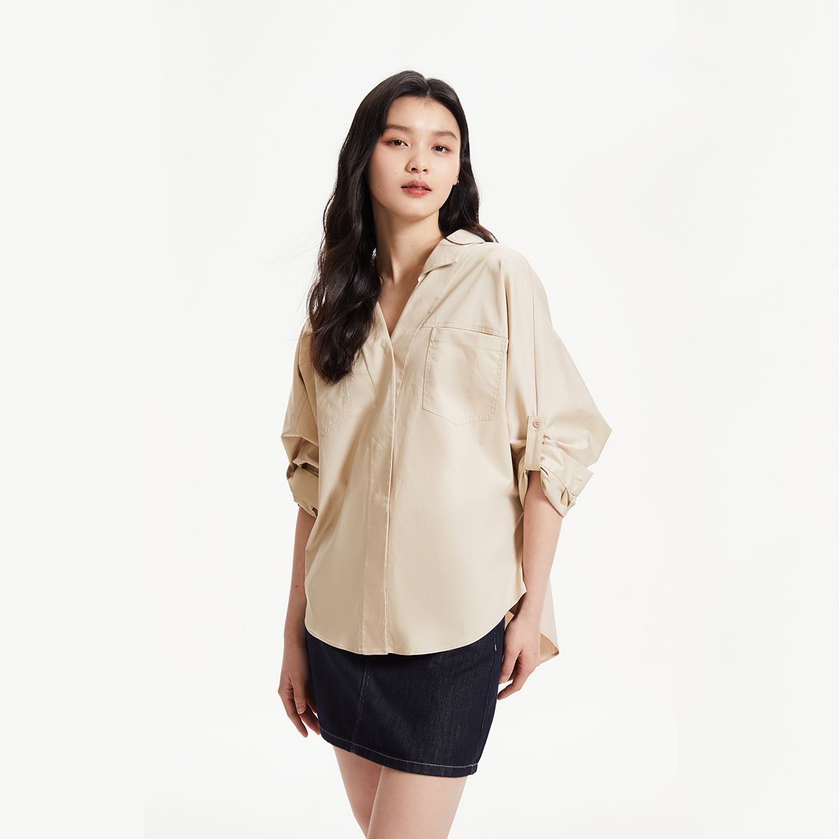 衬衫女优雅简约宽松可调节九分蝙蝠袖外套上衣 728977