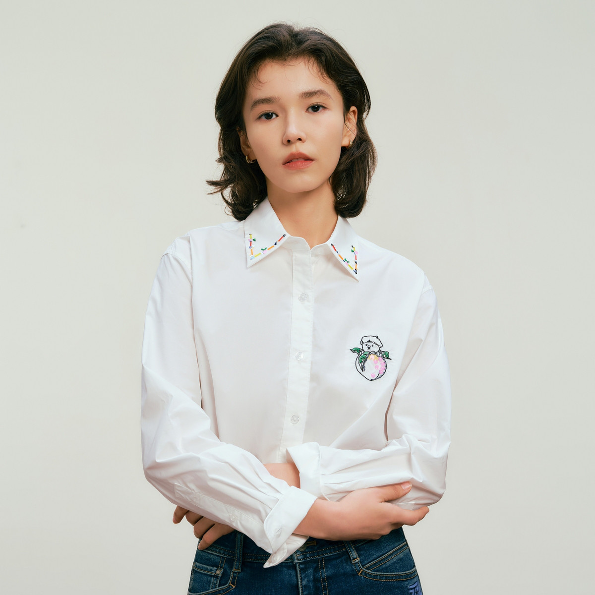 长袖衬衫小熊春秋款钉珠宽松白色衬衫长袖衬衣时尚女 366977