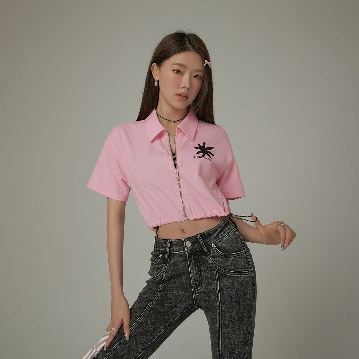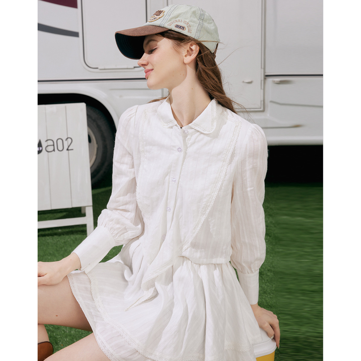 小个子设计感短款蕾丝荷叶边上衣春季休闲女式衬衫 146973