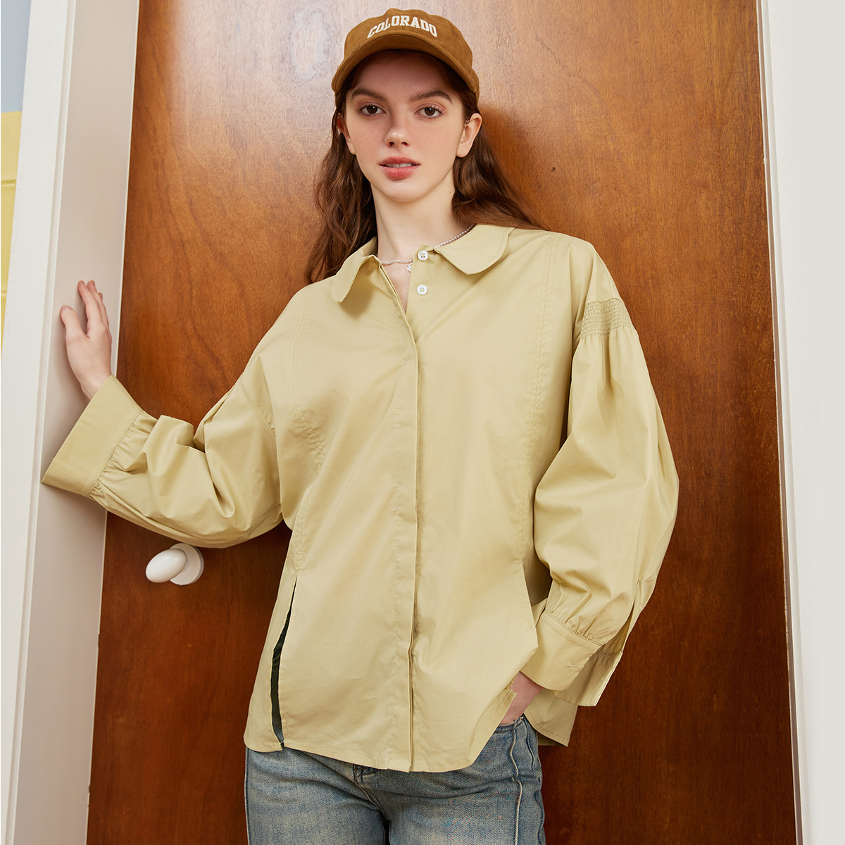 娃娃领宽松慵懒风设计感法式上衣春季休闲女式衬衫 240541