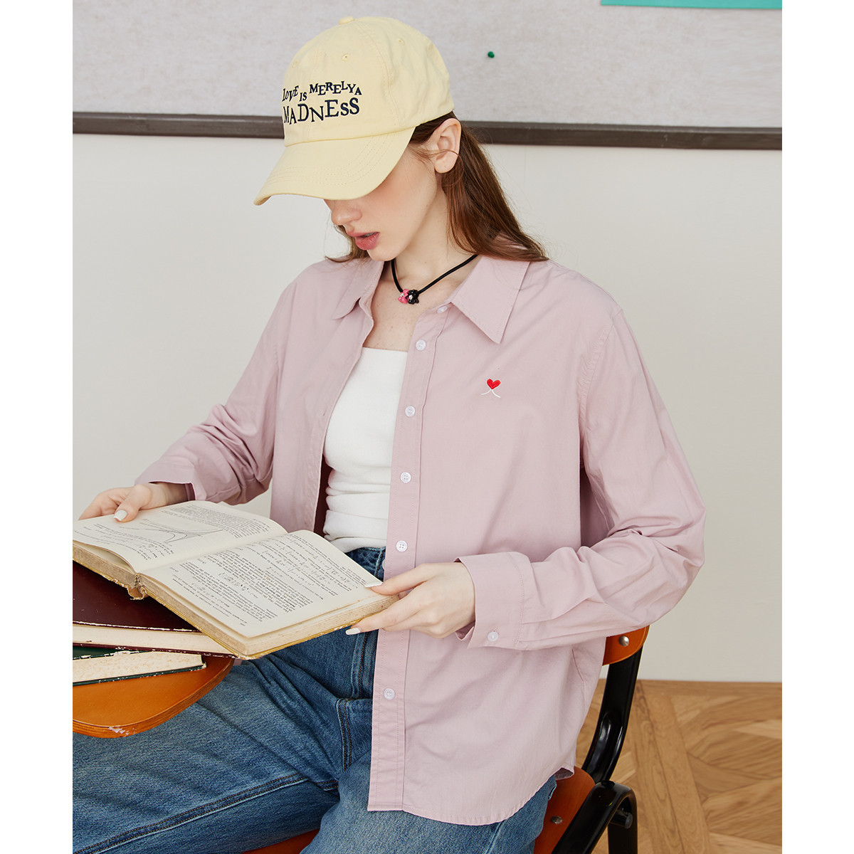 时尚刺绣简约基础款女式衬衫春季休闲百搭长袖上衣 896605