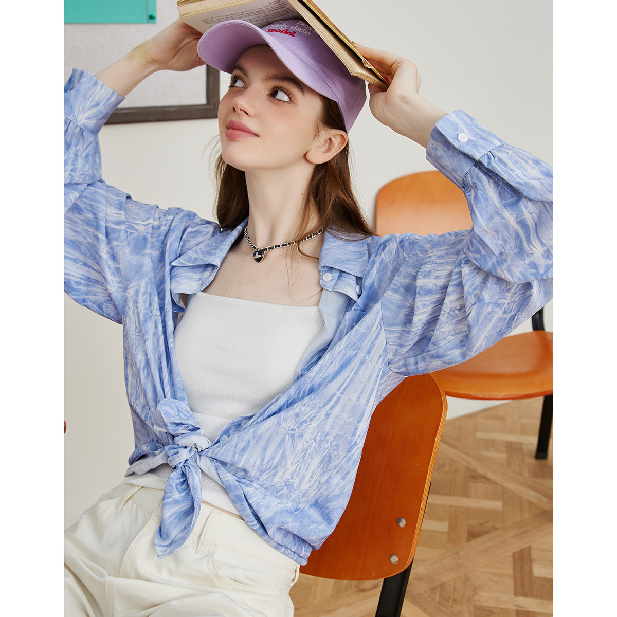 设计感小众法式扎染长袖上衣春季个性休闲女式衬衫 381725