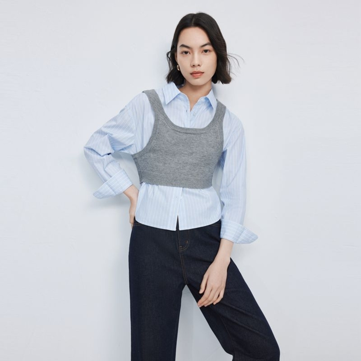 【春季款】设计感两件套都市通勤时尚条纹背心衬衫上衣女 788891