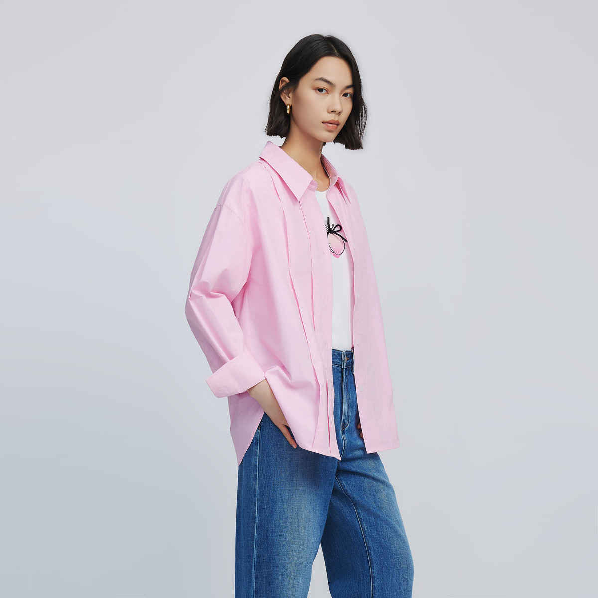 【薄荷曼波】春季款衬衫女多巴胺穿搭别致压褶休闲宽松垂感衬衫 133659