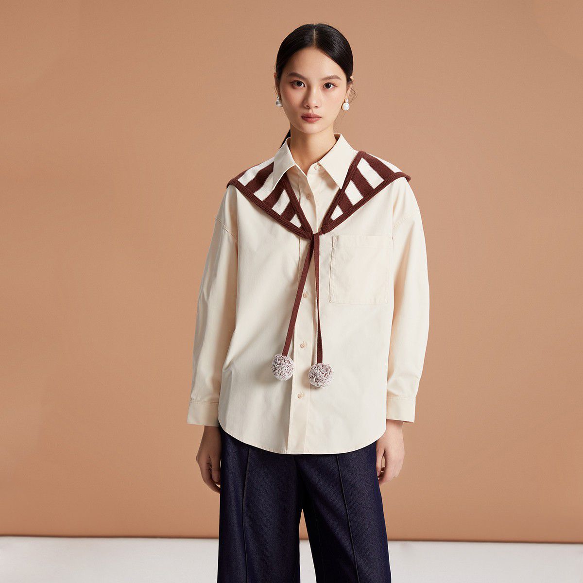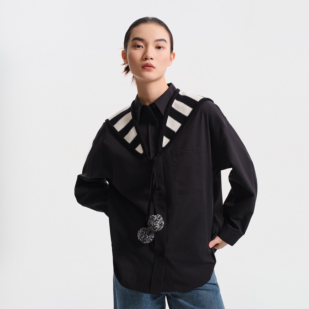 衬衫女慵懒宽松可拆卸条纹装饰 369041