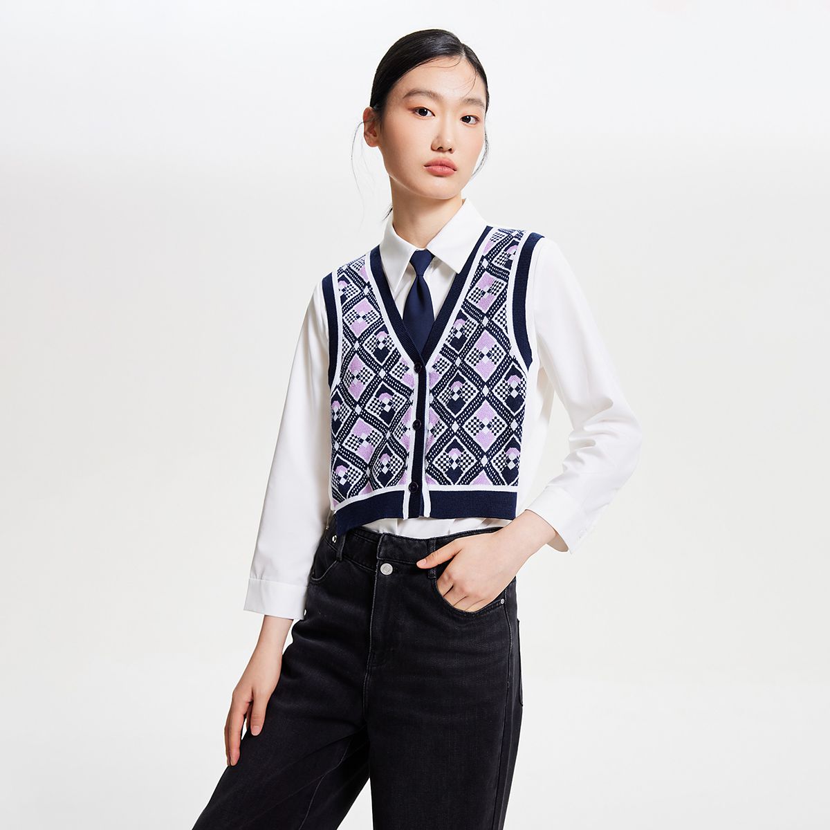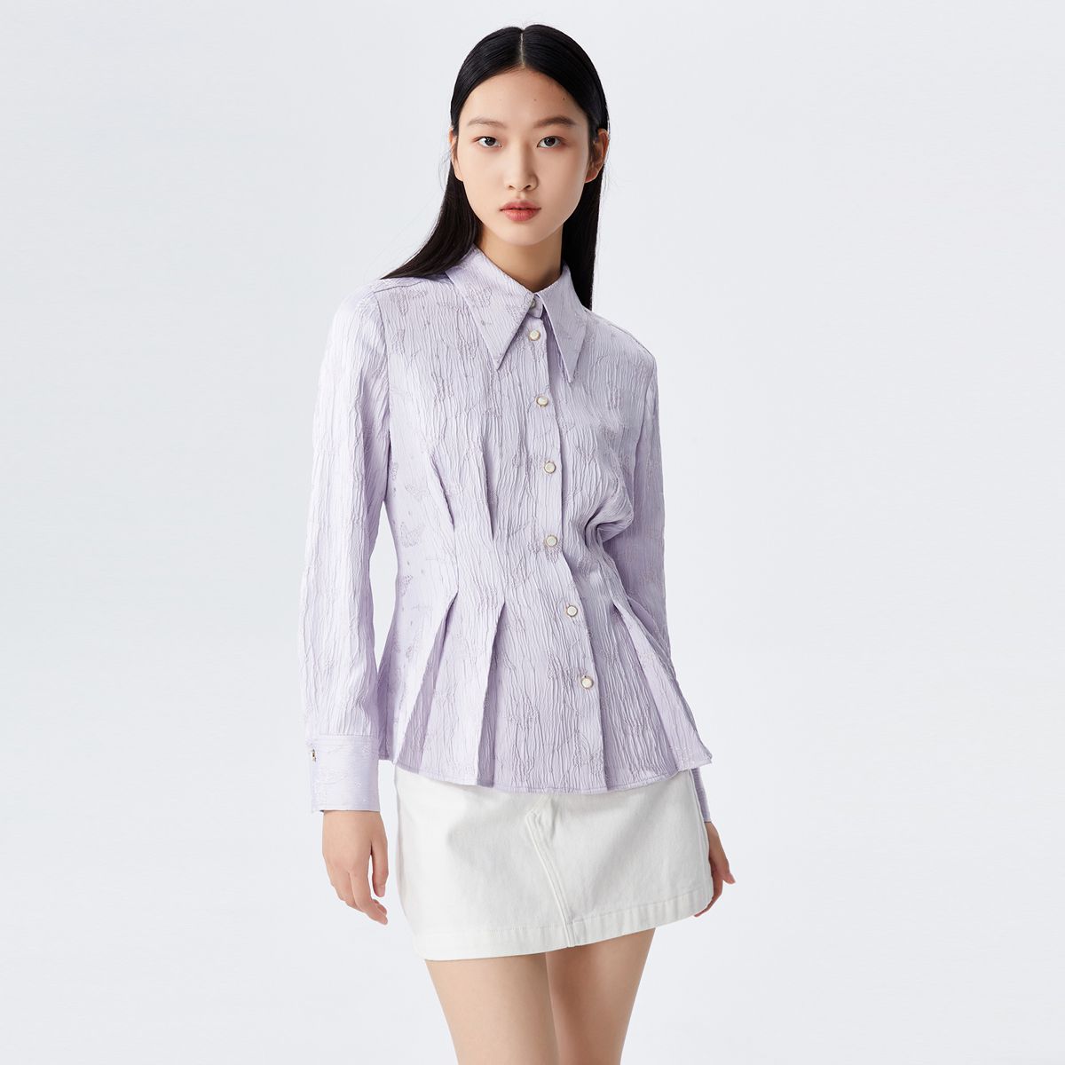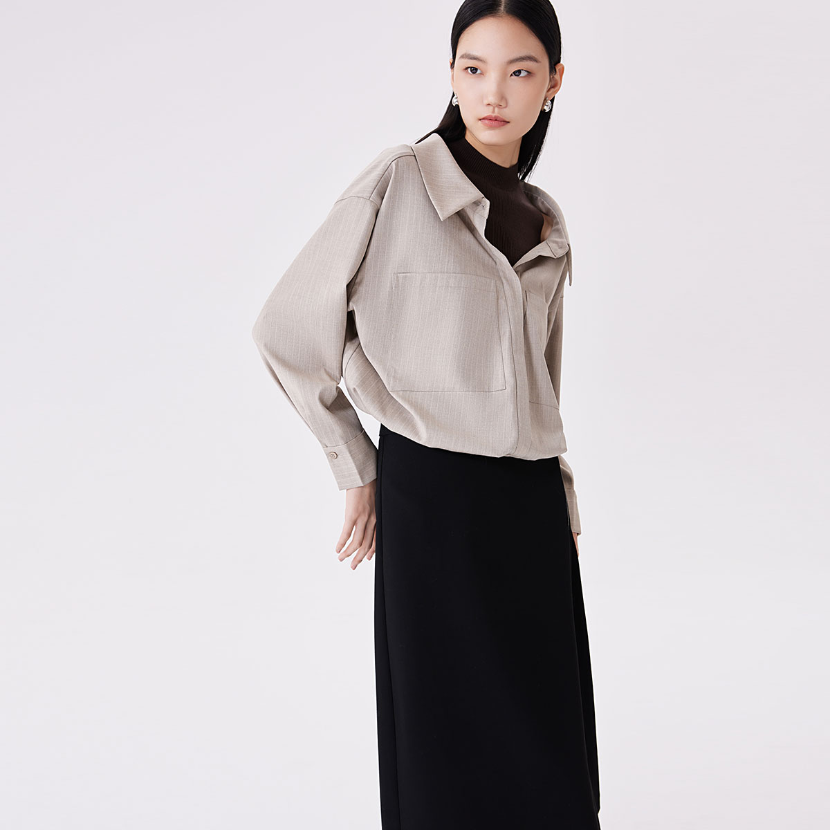 玖姿旗下安娜蔻系列通勤简约羊毛混纺刺绣上衣衬衫女春季 021836