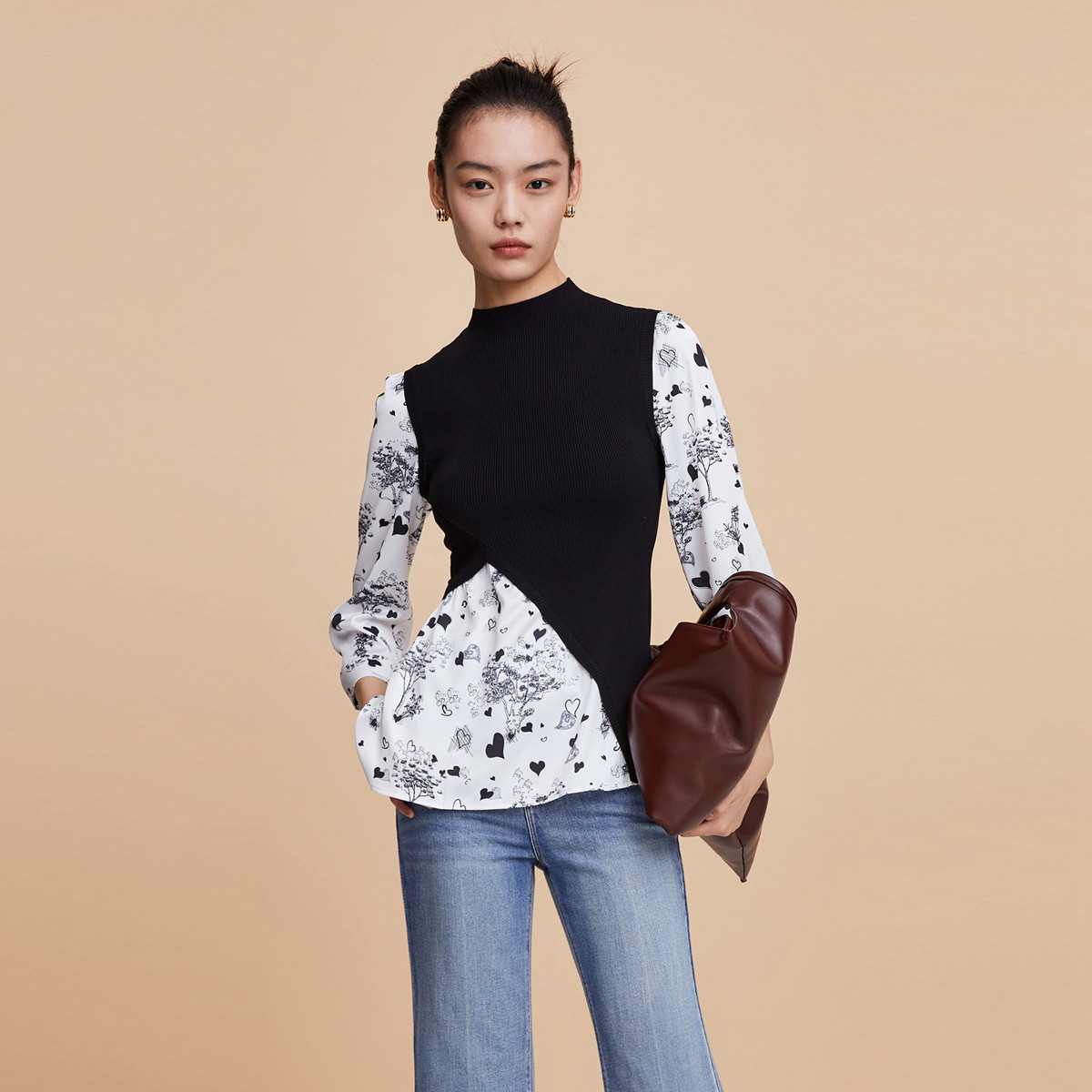 上衣女衬衫七分袖拼接针织衫假两件 897233