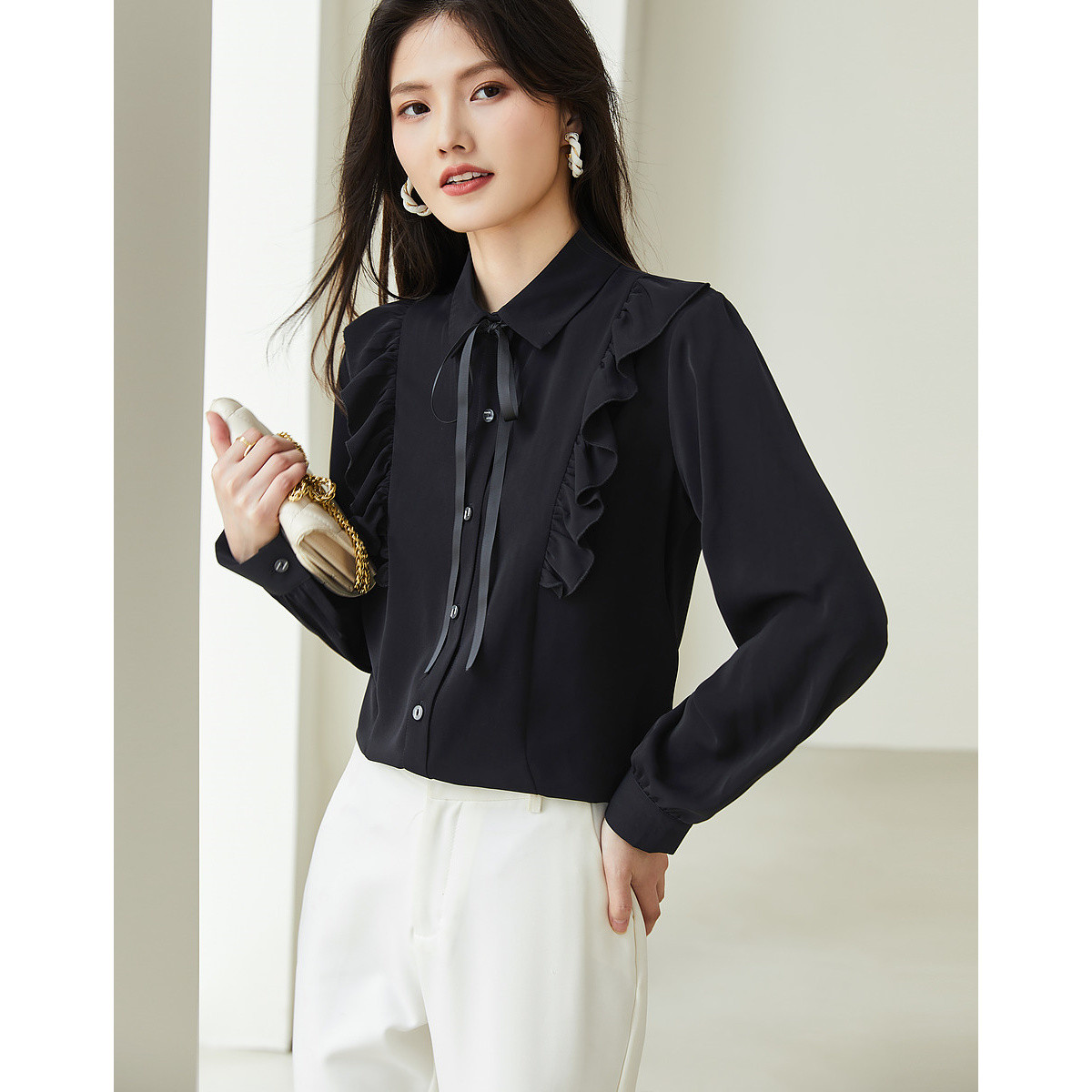 【春秋季叠穿神器】法式系带翻领唯美花边轻奢通勤衬衣女装上衣 790977