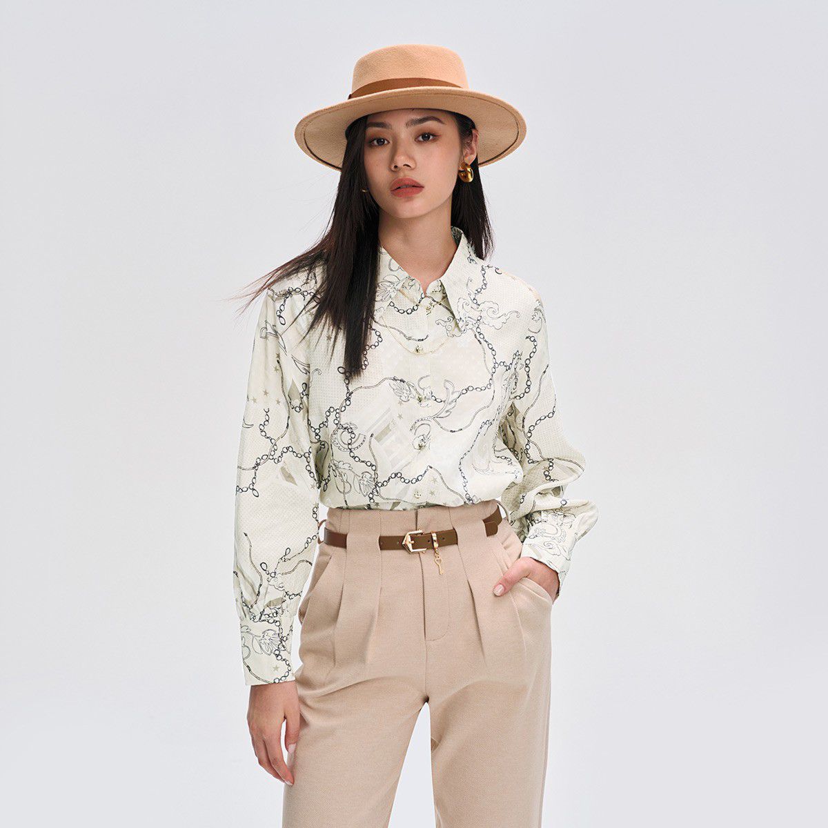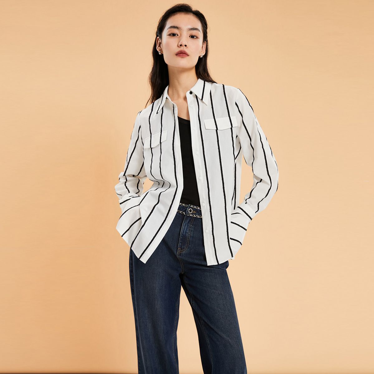 【春夏专柜款】H版型小翻领长袖设计简约衬衫女气质百搭时尚 838033