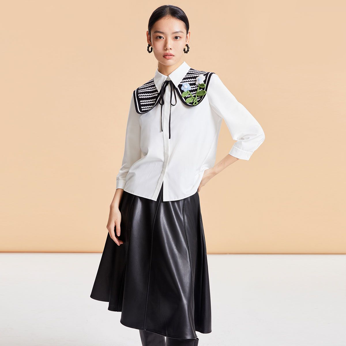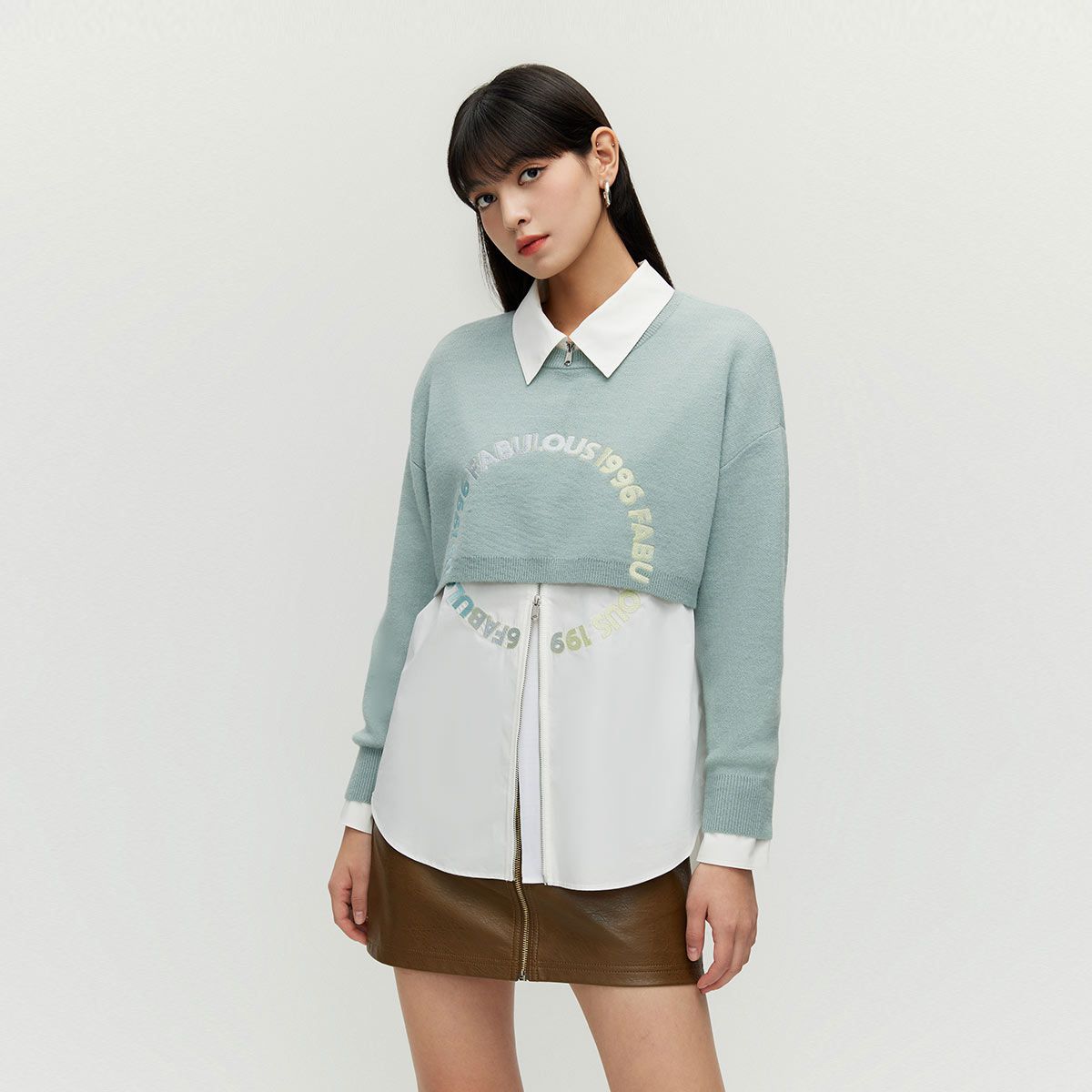 衬衫【春夏专柜款】复古学院风假两件七分袖上衣女气质百搭时尚 028177