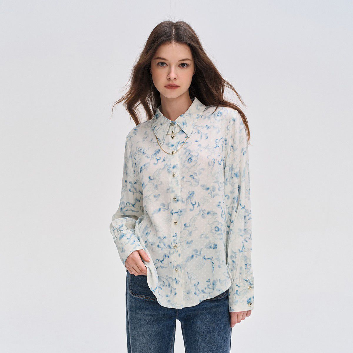 【春夏专柜款】宽松长袖翻领简约休闲牛仔衬衫女气质百搭时尚 343889