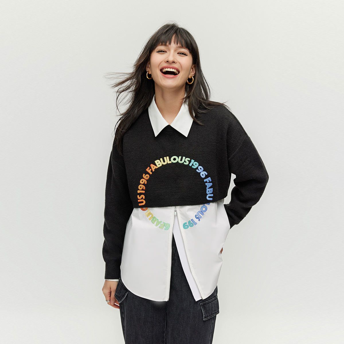 【学院风】休闲舒适假两件长袖上衣女 183633