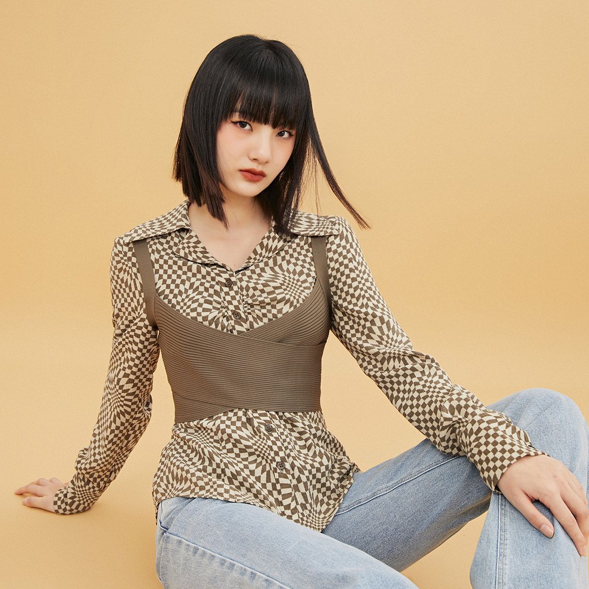 【福利款】夏季显瘦两件套长袖设计感衬衫女 155866