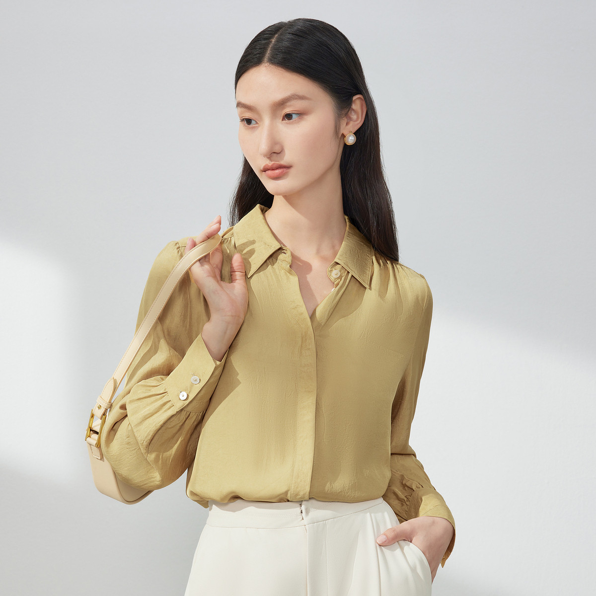 JZ玖姿肌理醋酸衬衫女装春季职业休闲通勤OL风上衣 555532