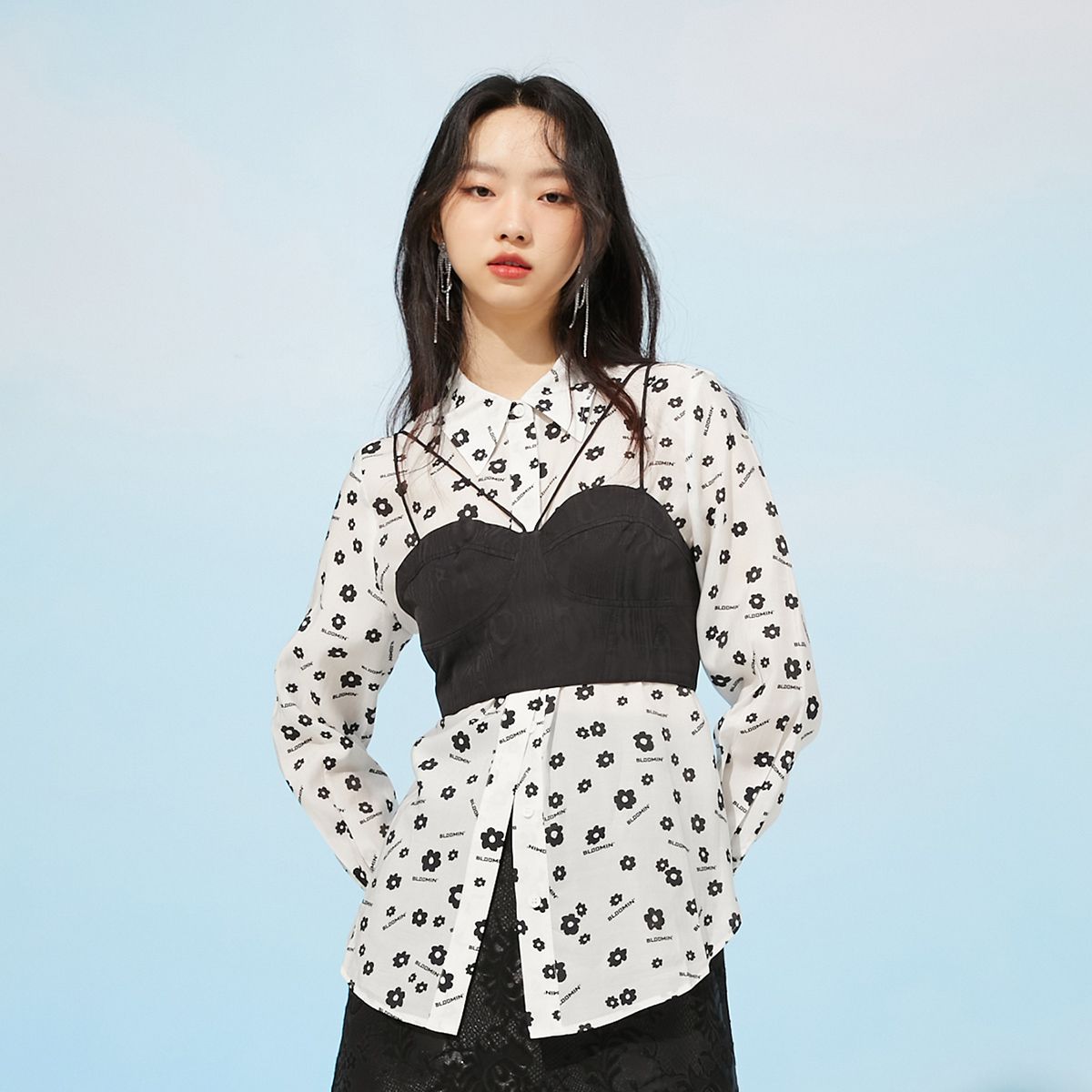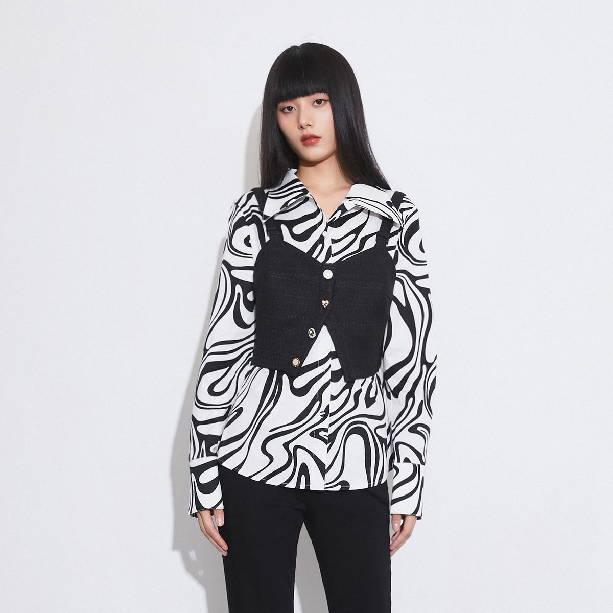 【专柜同款】春夏翻领宽松版型长袖假两件简约衬衫女气质百搭时尚 917073