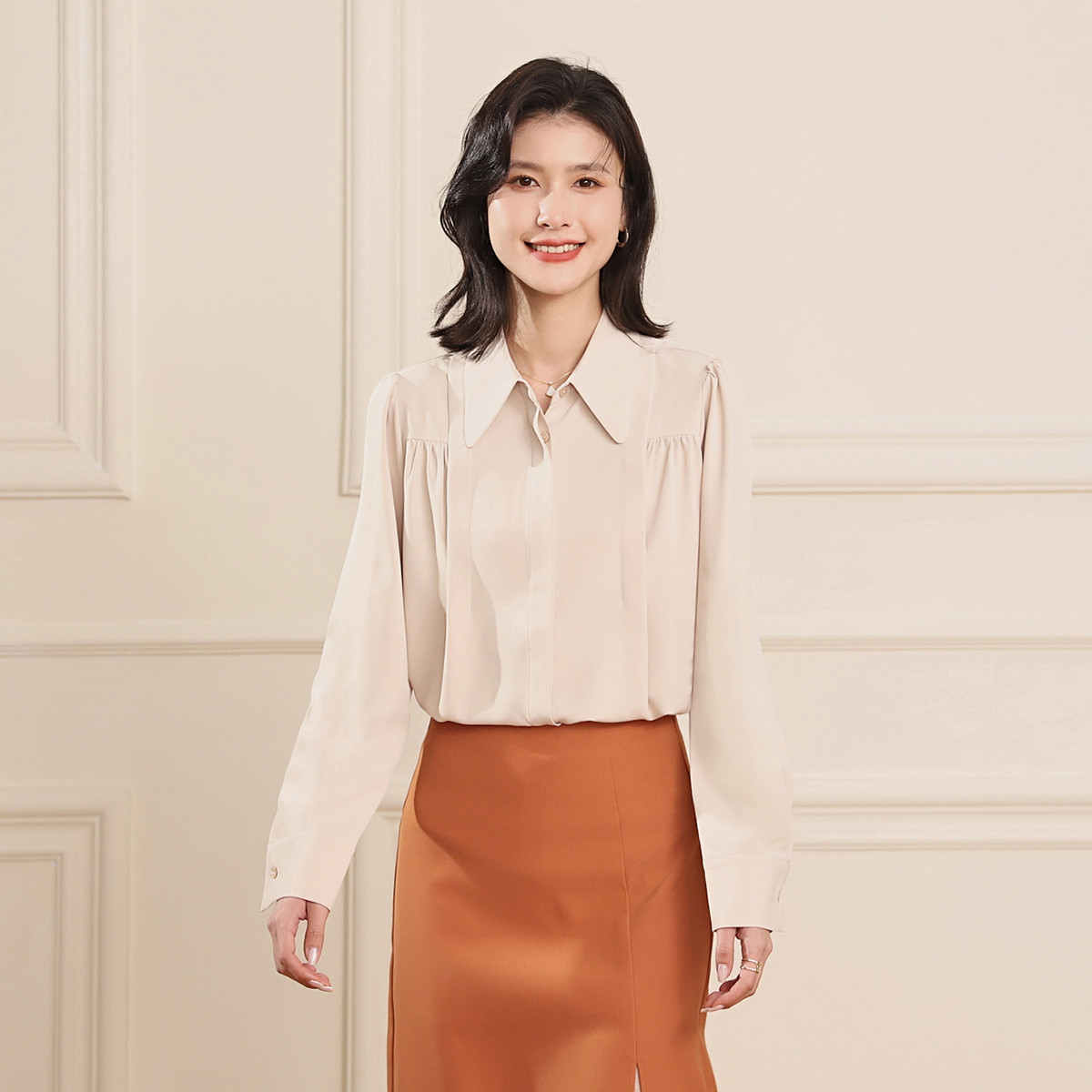 【100%桑蚕丝 纯色百搭】商务通勤长袖真丝衬衫打底衫 206547