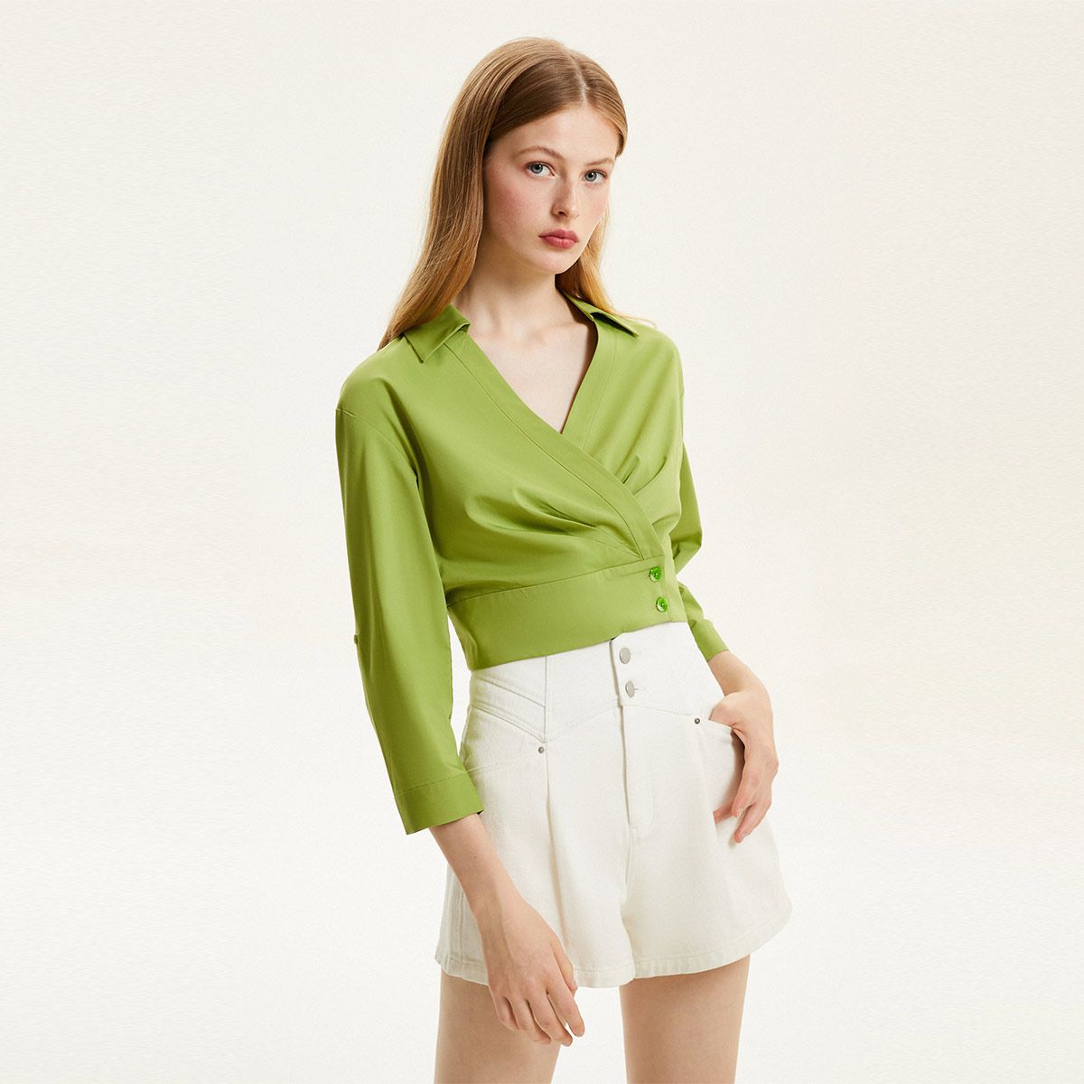 【立体褶皱设计】春夏专柜款简约优雅V领七分袖衬衫上衣百搭时尚 975569
