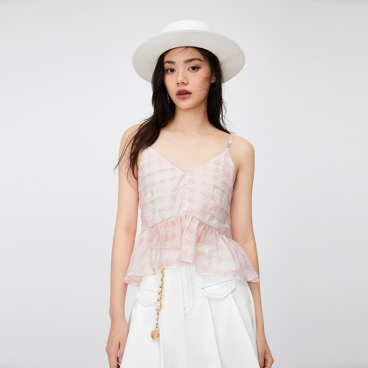 【百搭满印】夏季含莱赛尔甜美修身短款吊带雪纺衫女 487514