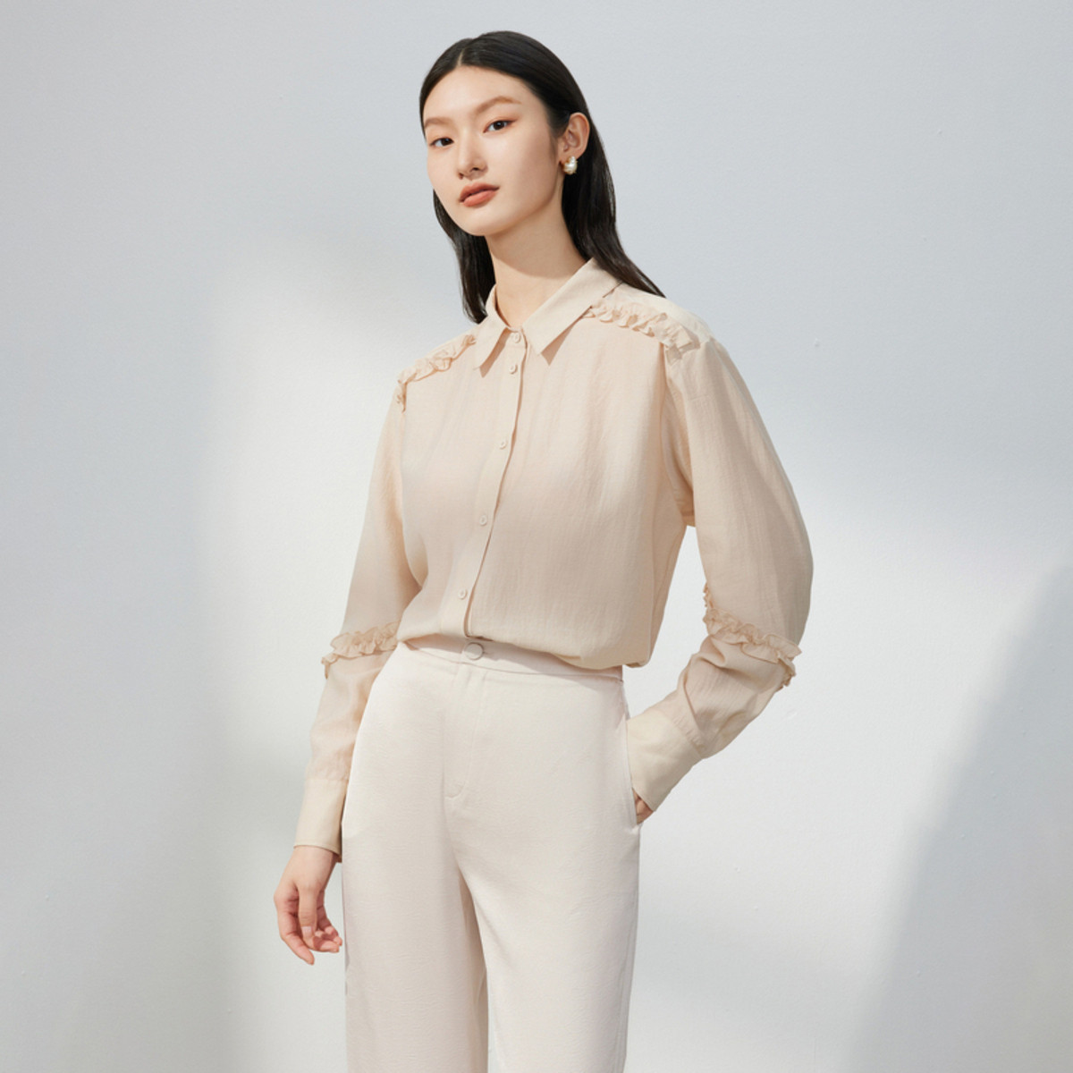 JZ玖姿小众设计感木耳边衬衫女装春季肌理褶皱单上衣 234380