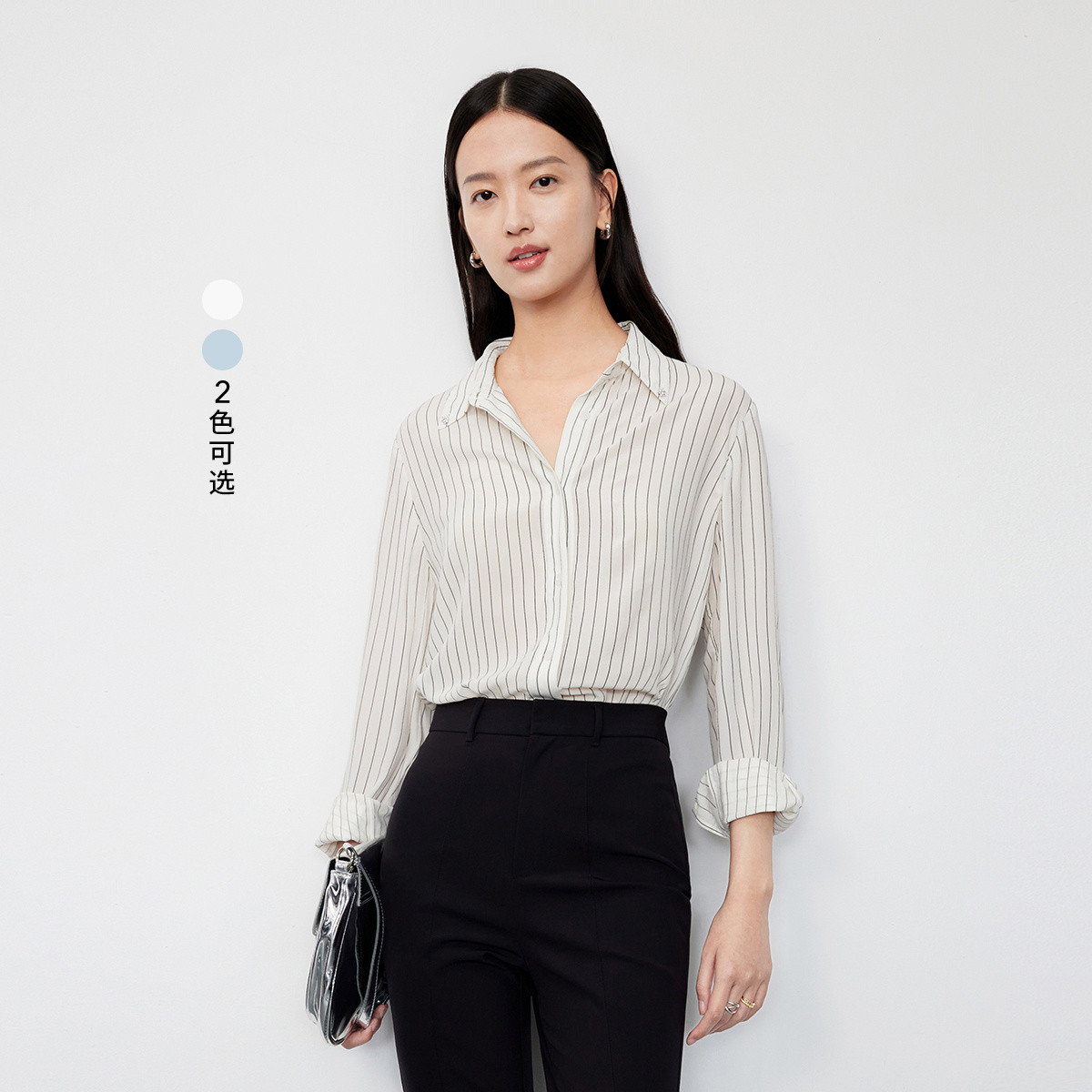 【100%桑蚕丝 纯色百搭】商务通勤长袖真丝衬衫打底衫 206547