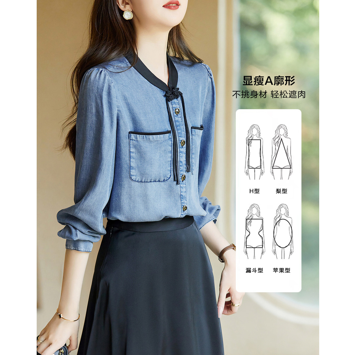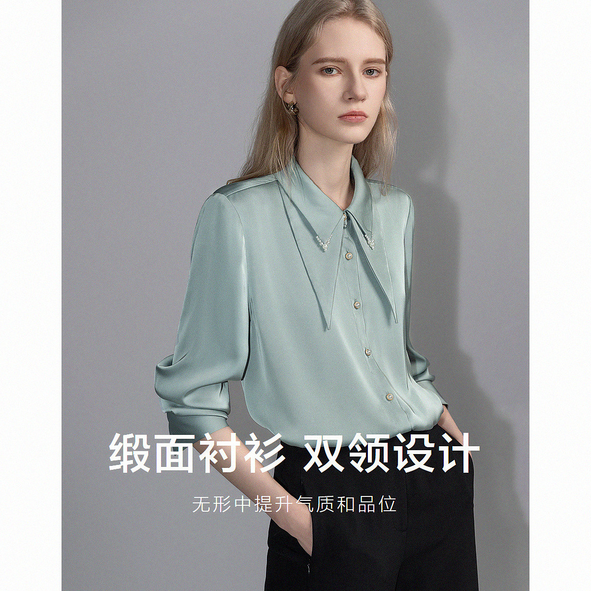 【缎面气质衬衫】秋通勤双层领合体衬衣女装上衣 122753