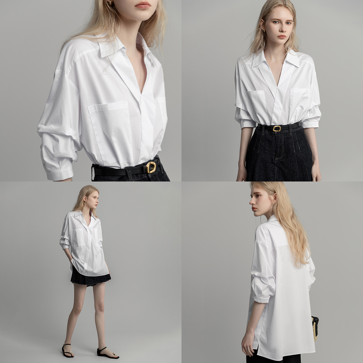 【新贵小资风】秋季款翻领长袖衬衫棉质落肩简约衬衣女装上衣 470593