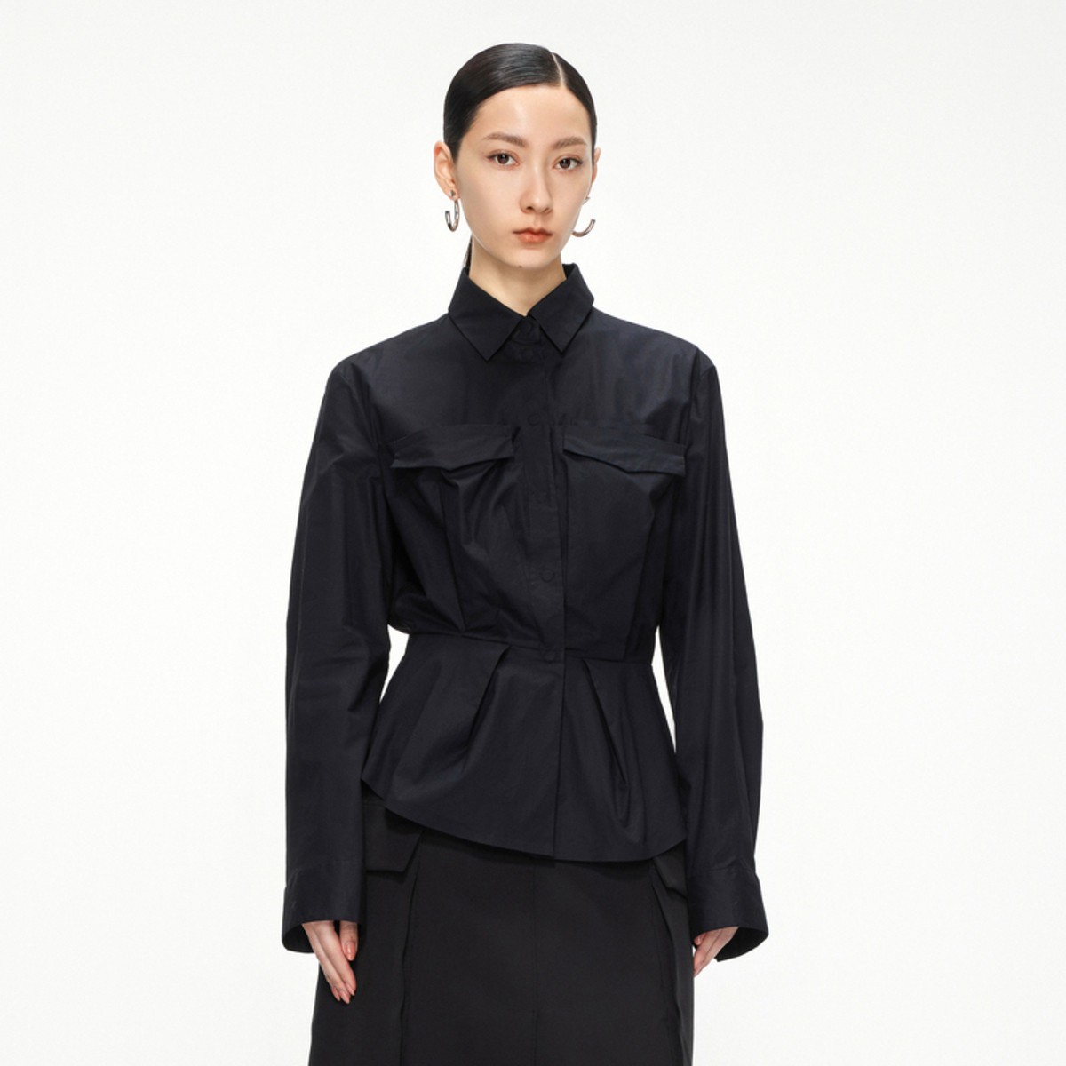 春衬衫大口袋长袖X型衬衣女 242379