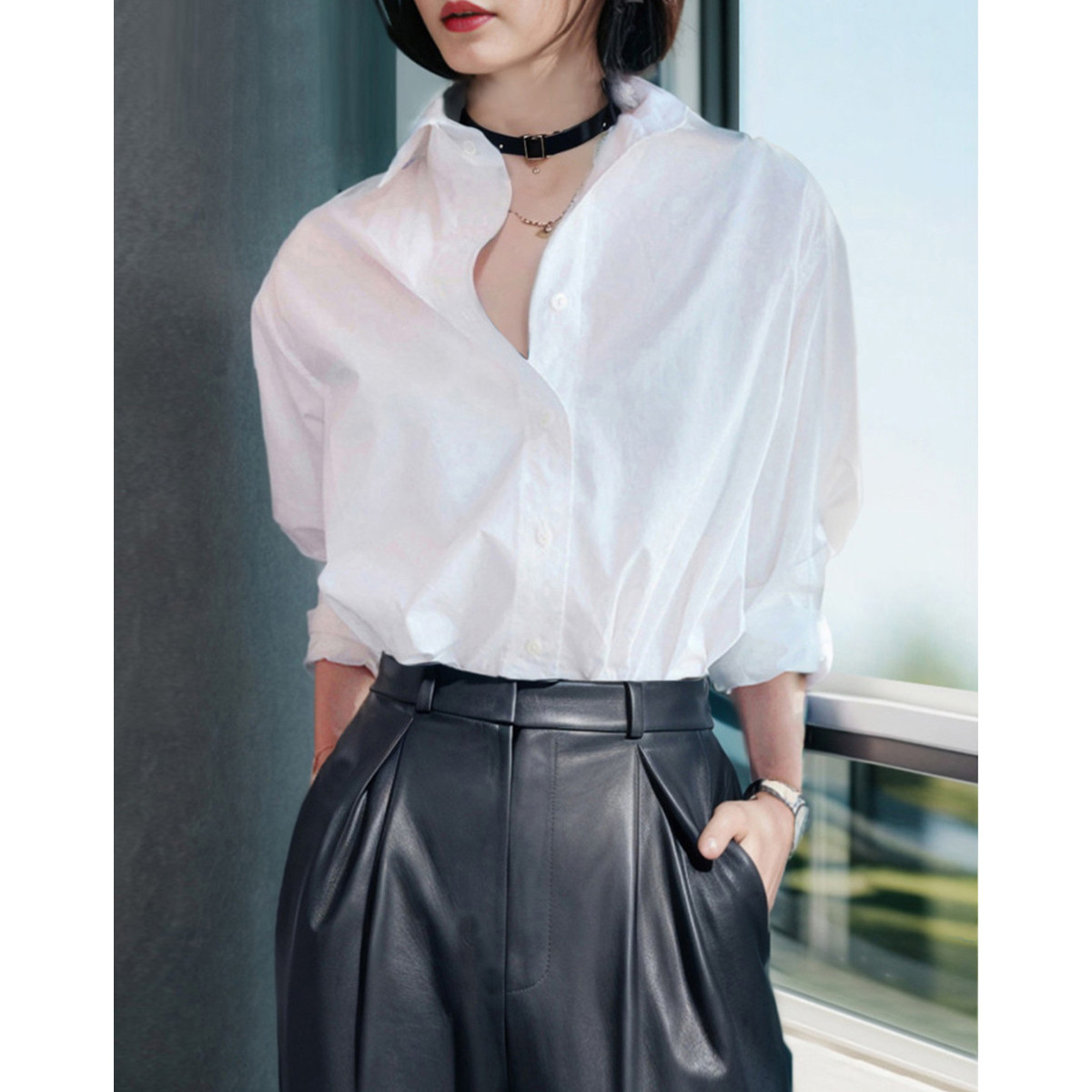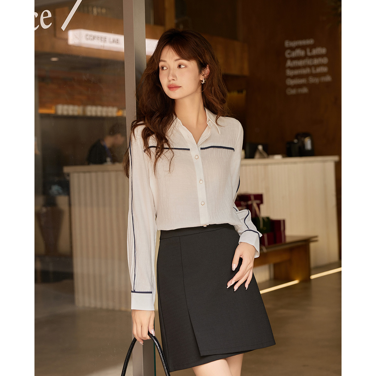 【通勤必备白衬衫】时尚通勤风撞色舒适轻薄显瘦高级感女式衬衣 063809