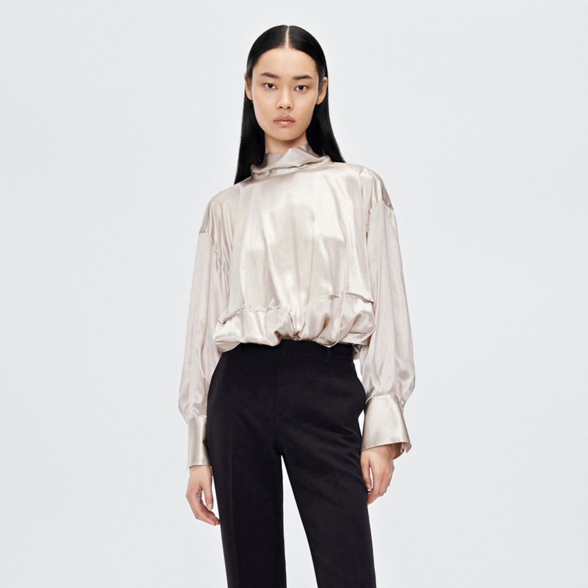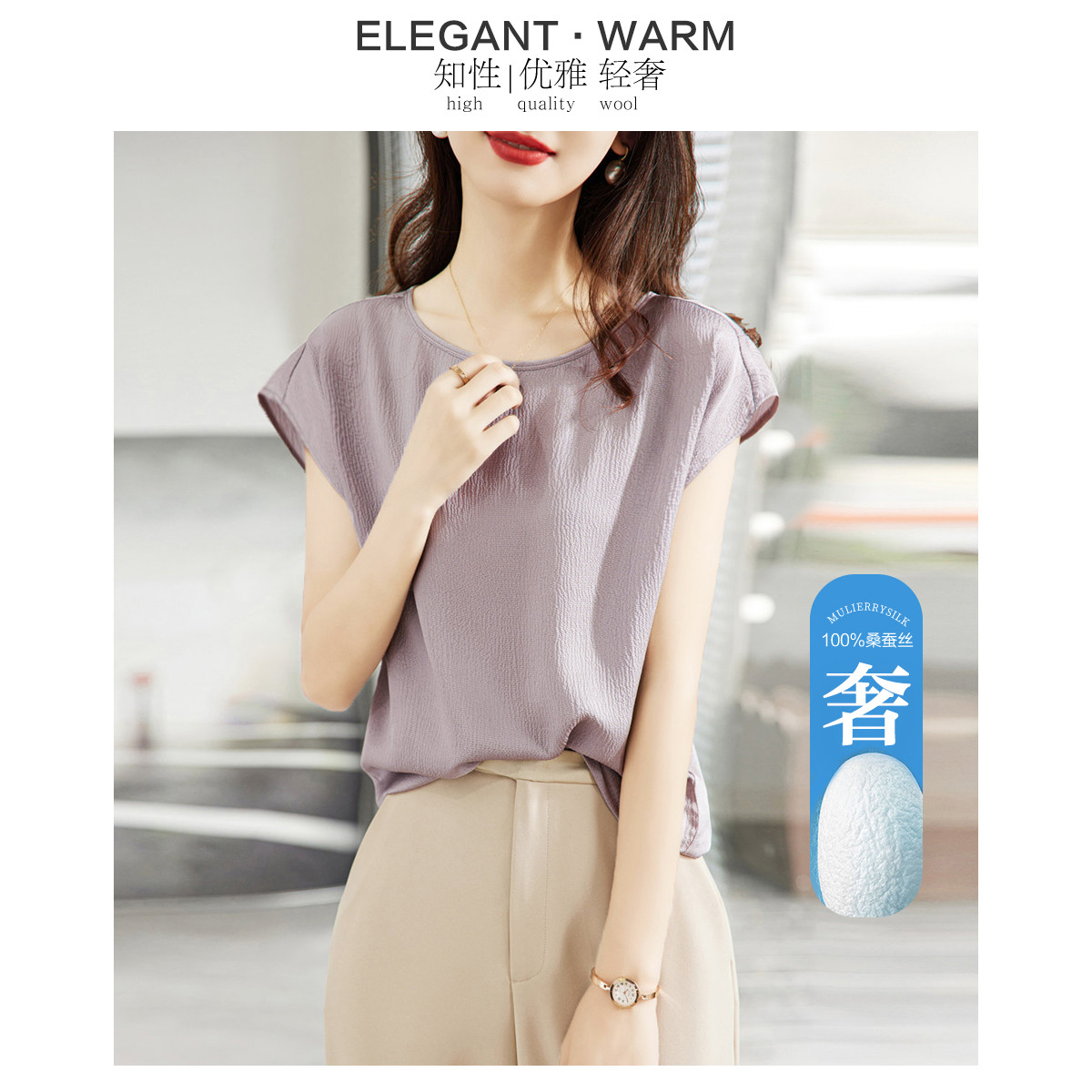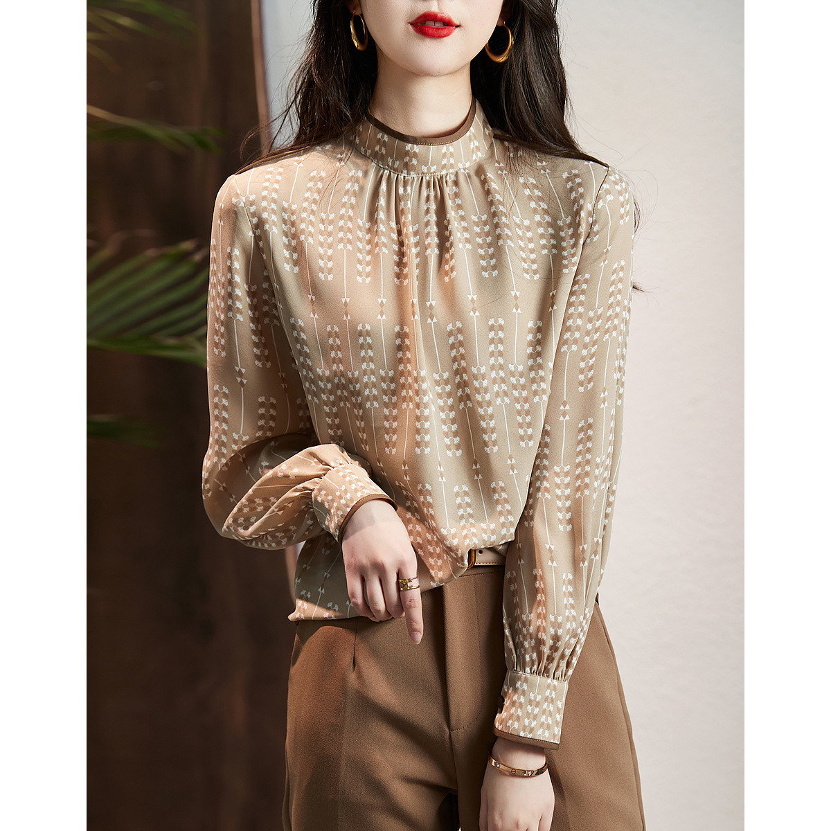 秋衬衫立领长袖桑蚕丝套头衬衫女 153035
