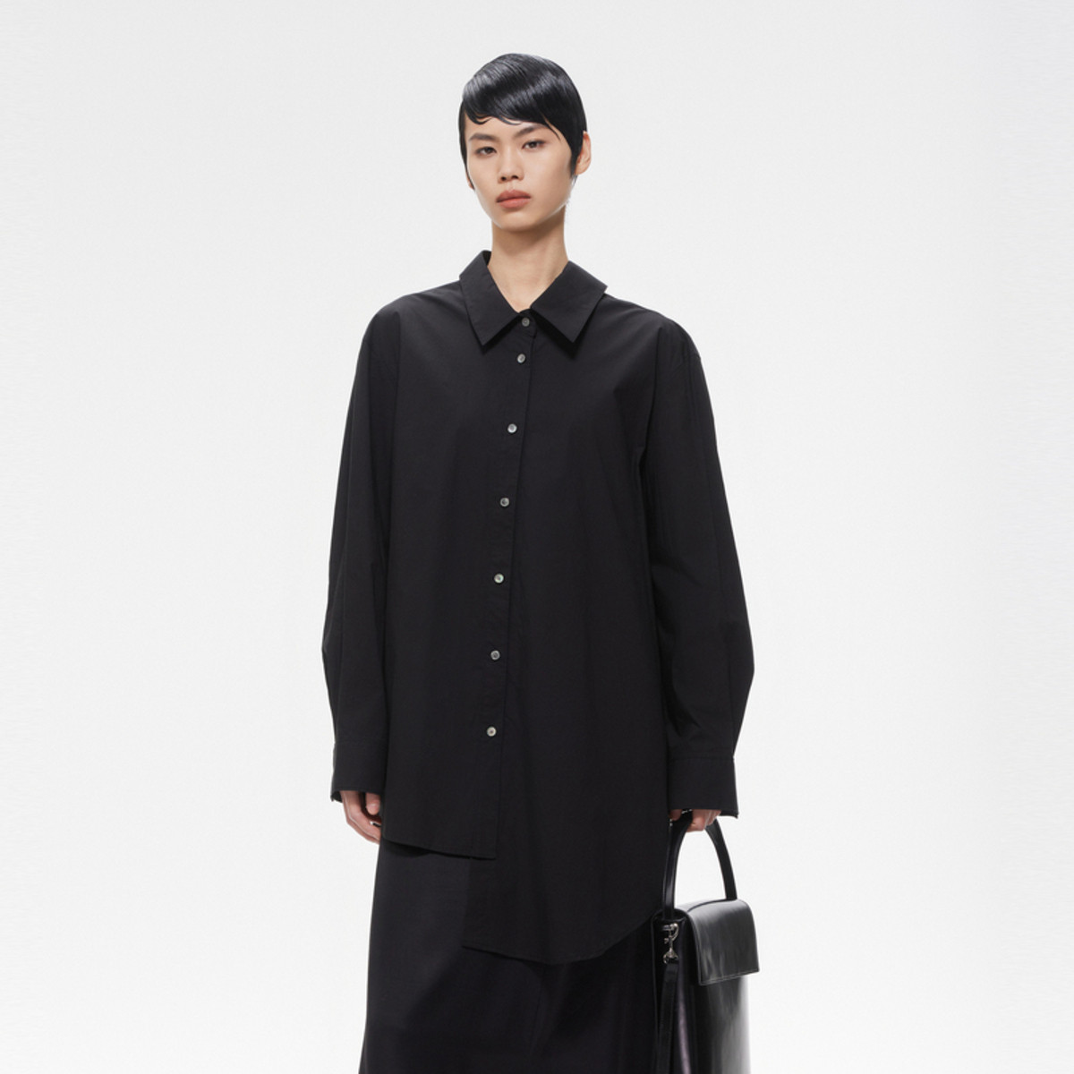 【通勤衬衫】春秋翻领长袖不对称口袋衬衣女装上衣 752577