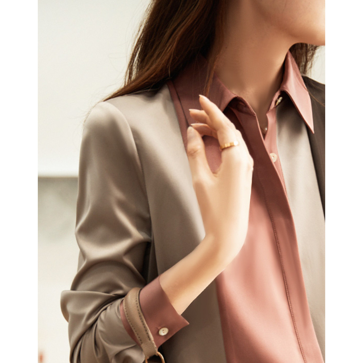 【100%桑蚕丝 纯色百搭】商务通勤长袖真丝衬衫打底衫 206547