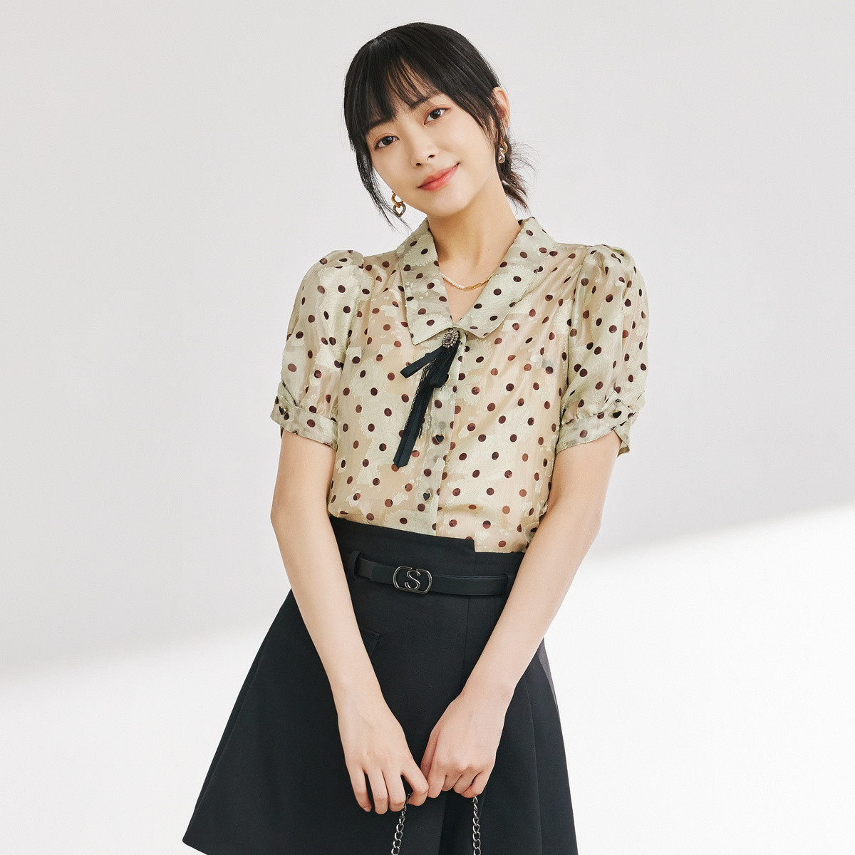 【波点泡泡袖衬衫】春秋立领合体长袖通勤衬衣女装上衣 583297