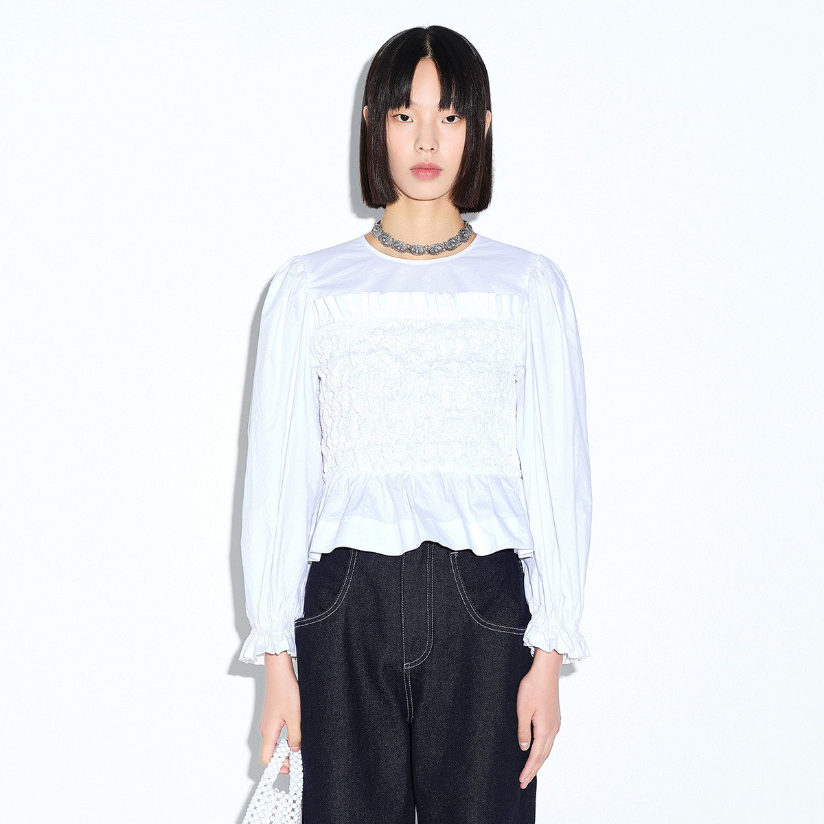 地素春秋专柜圆领泡泡袖娃娃衫长袖小上衣 541387
