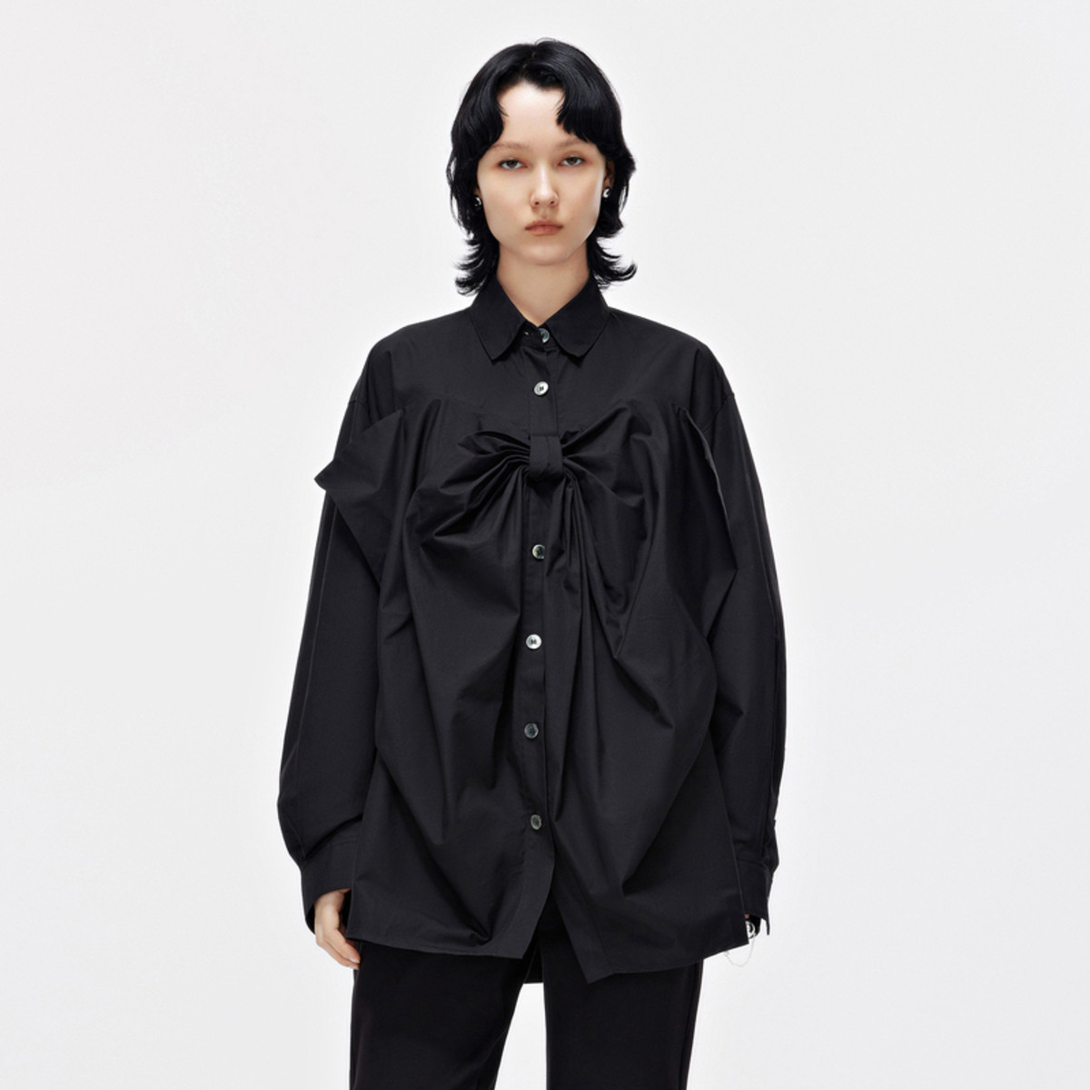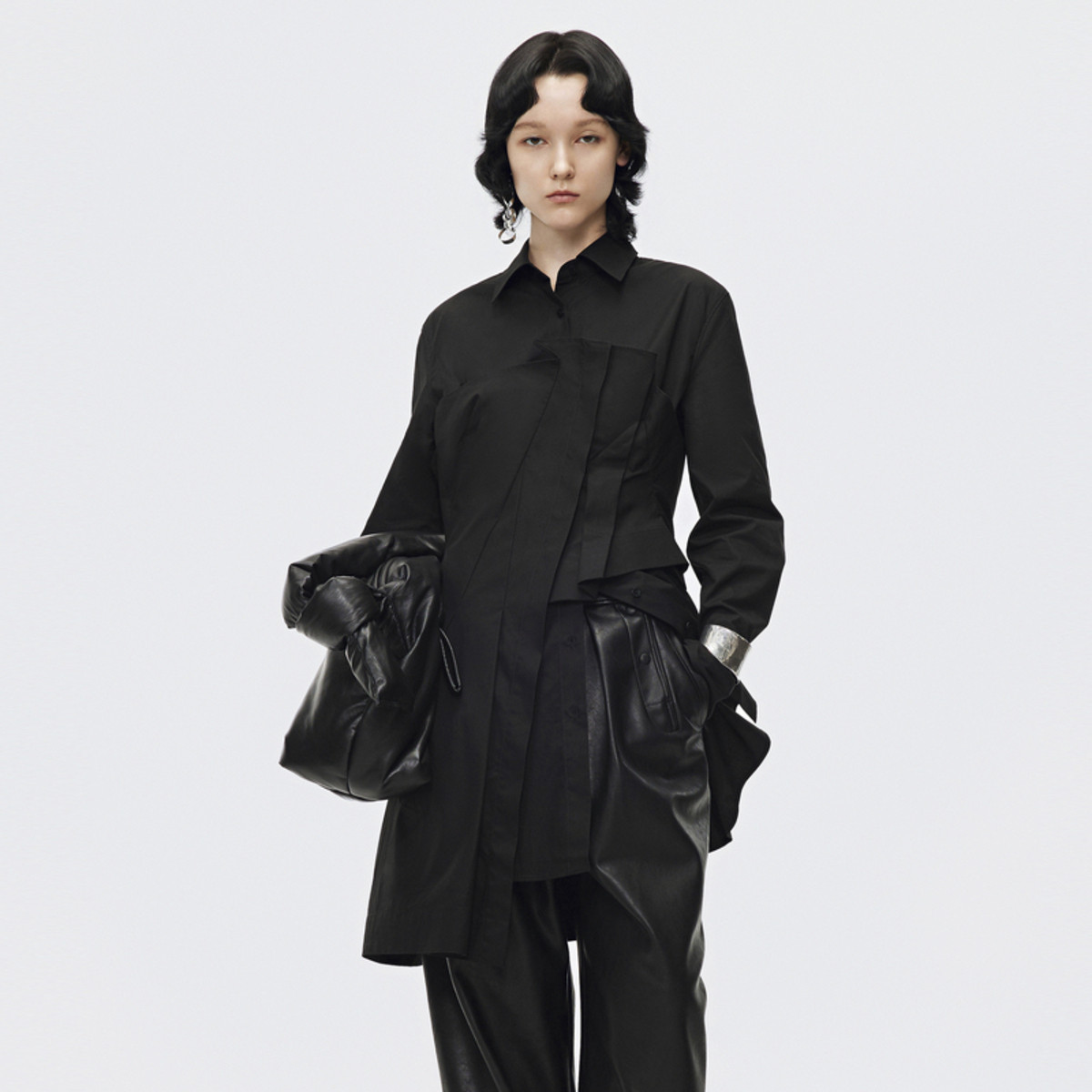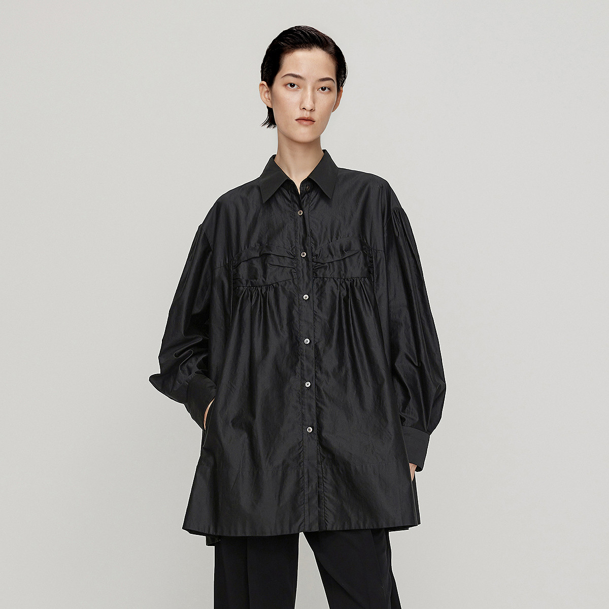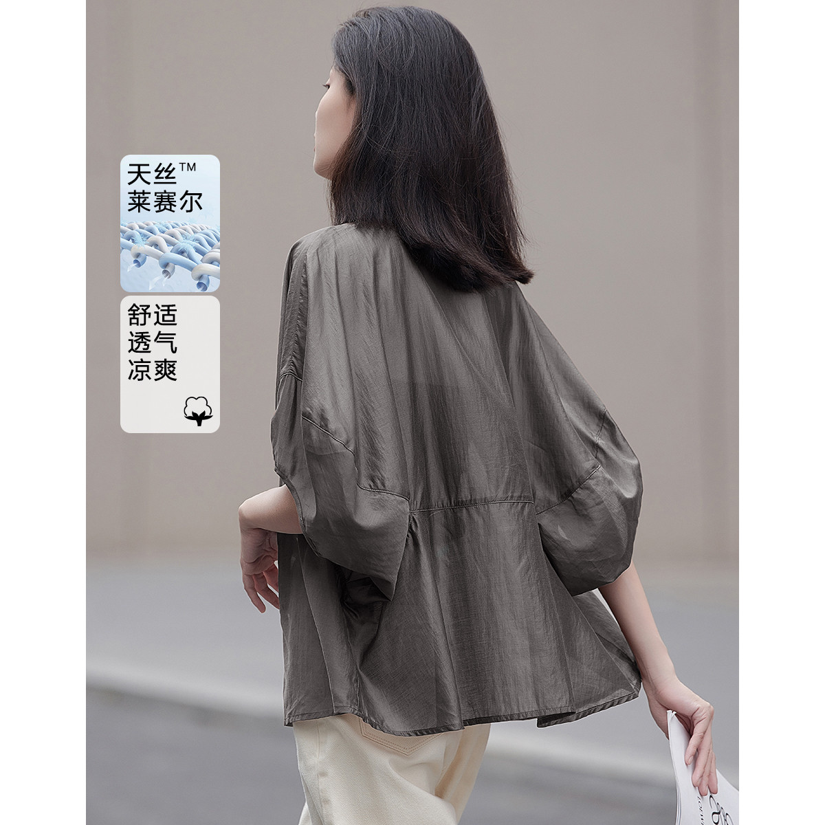 【轻薄天丝衬衫】优雅风翻领分割连体造型袖衬衫女 146434