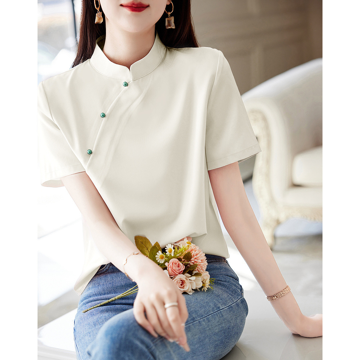 新中式衬衫女2024夏季新款国风绣花气质时尚盘扣轻薄显瘦上衣 993624