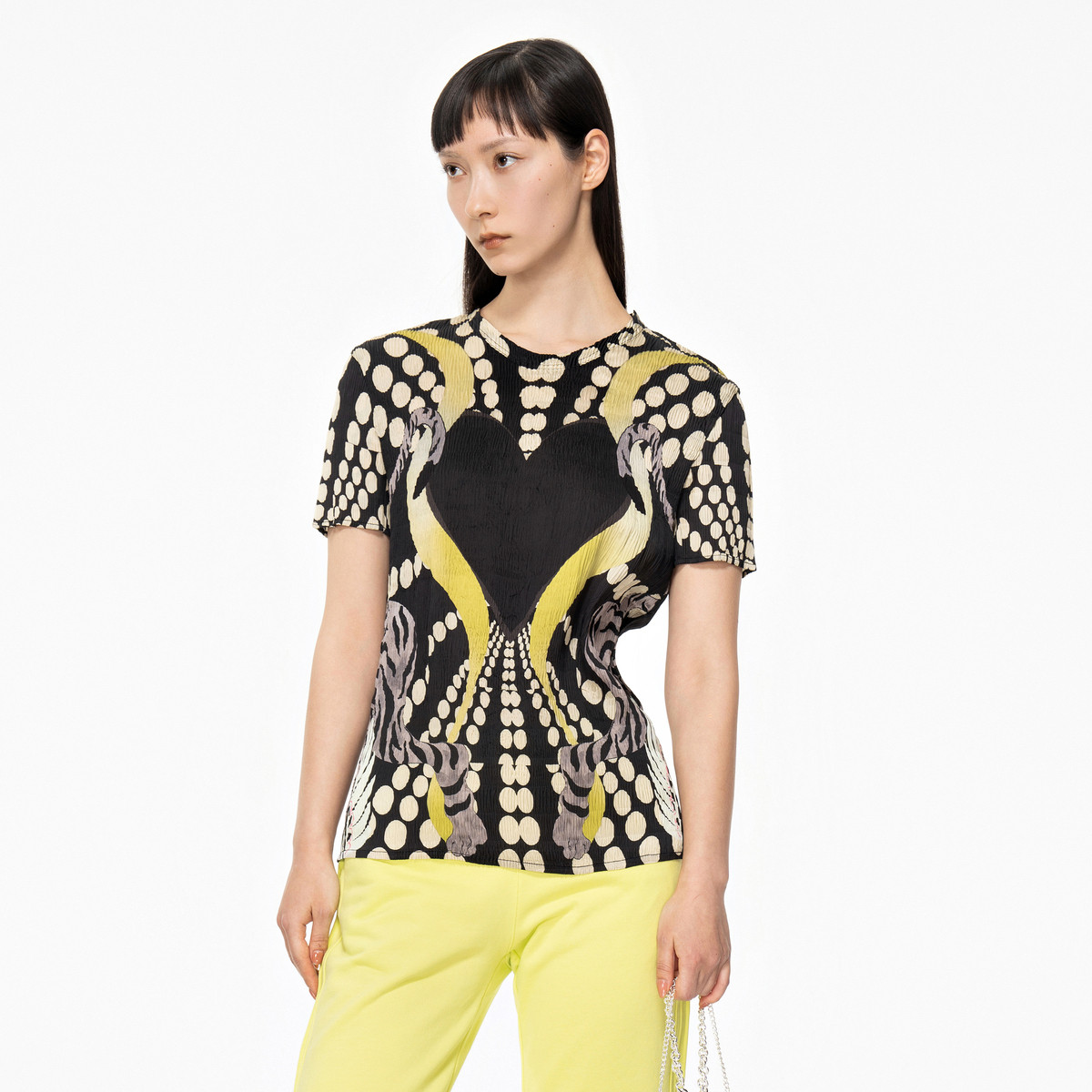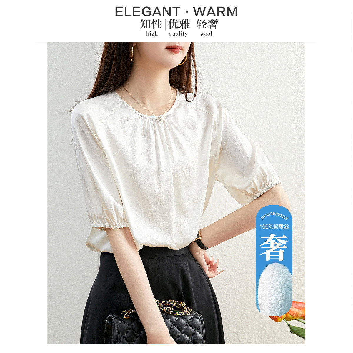 【丝滑桑蚕丝弹力缎】夏季典雅印花衬衫圆领气质小个子衬衣女上衣 212609
