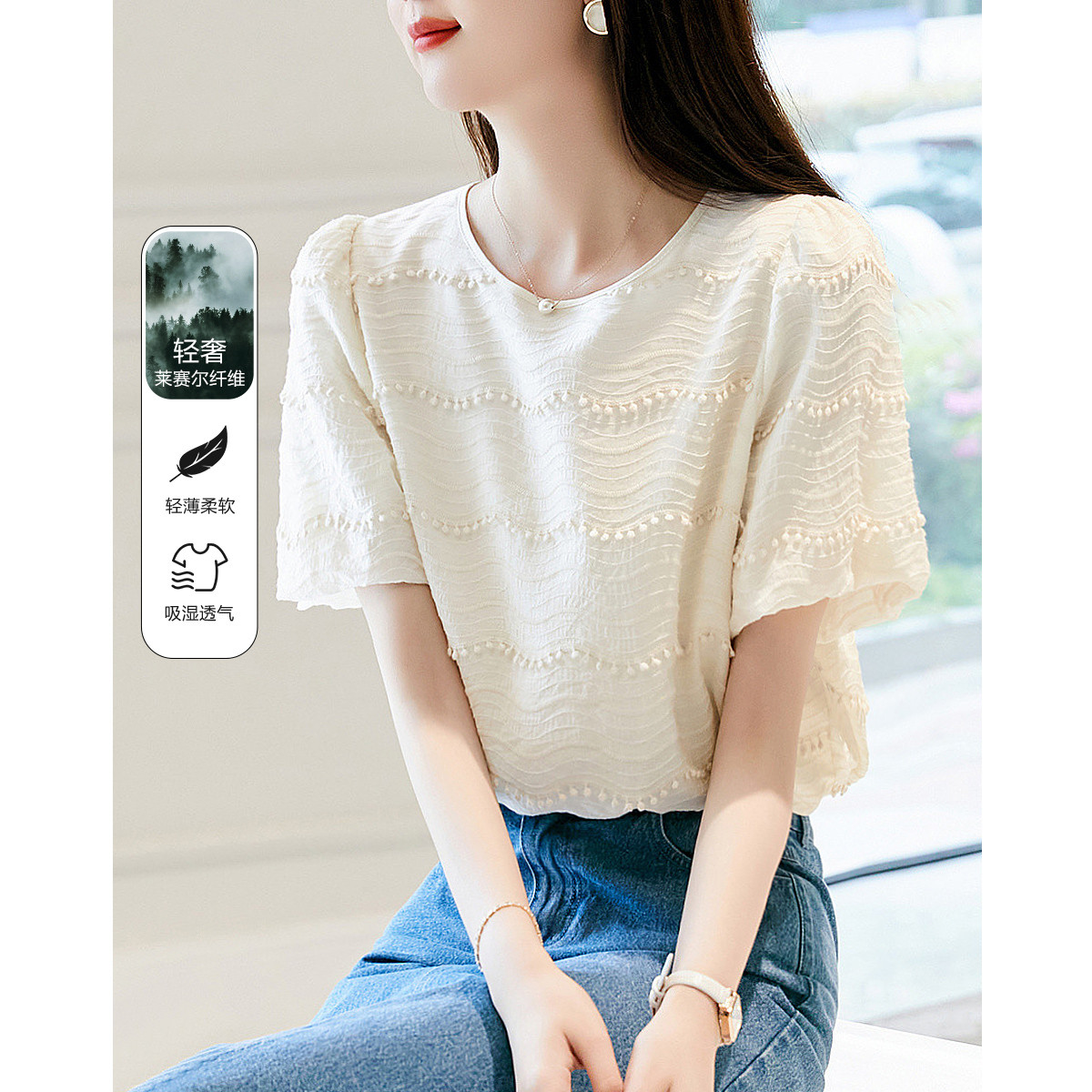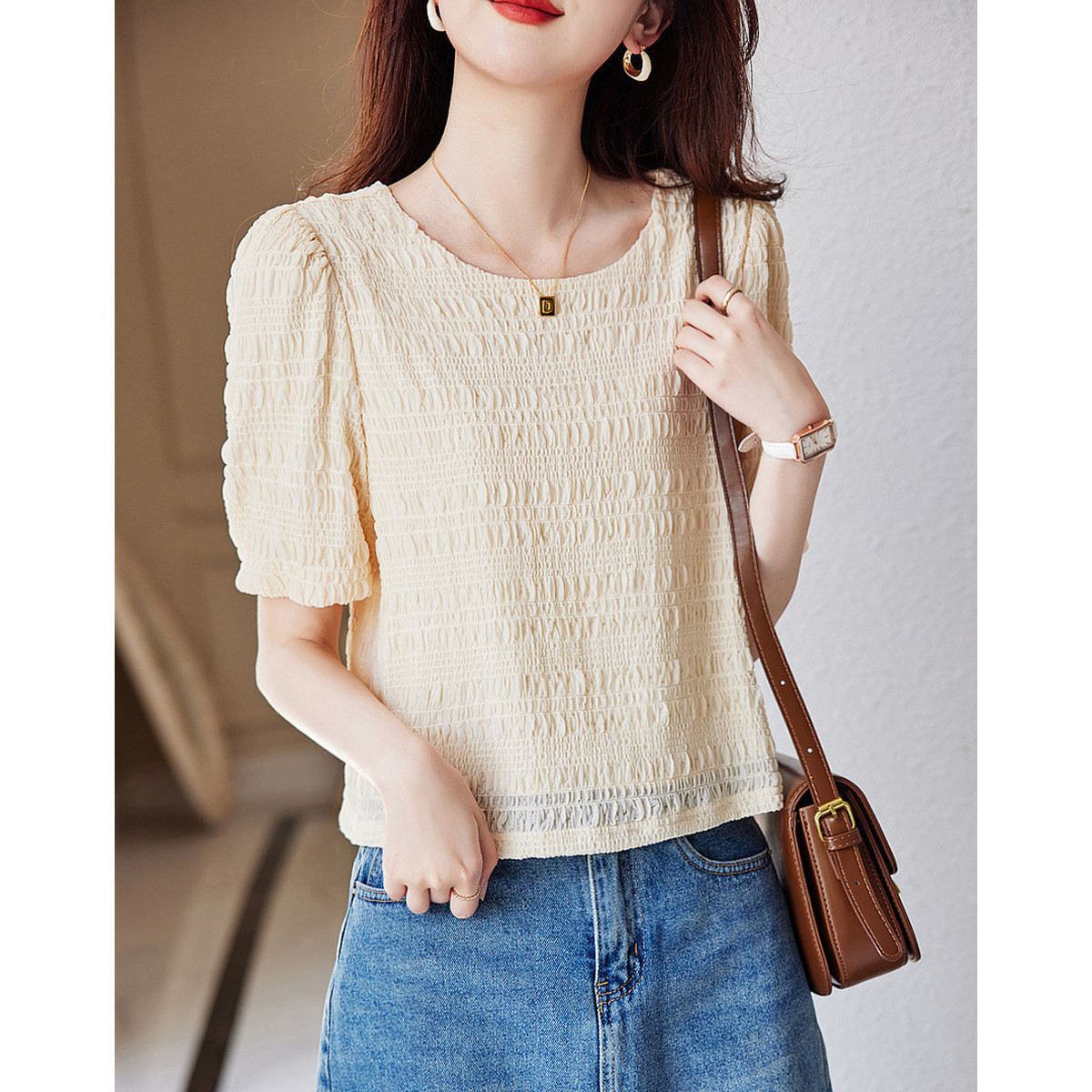 【肌理感泡泡袖衬衫】夏圆领中袖微弹衬衣女装上衣 067841
