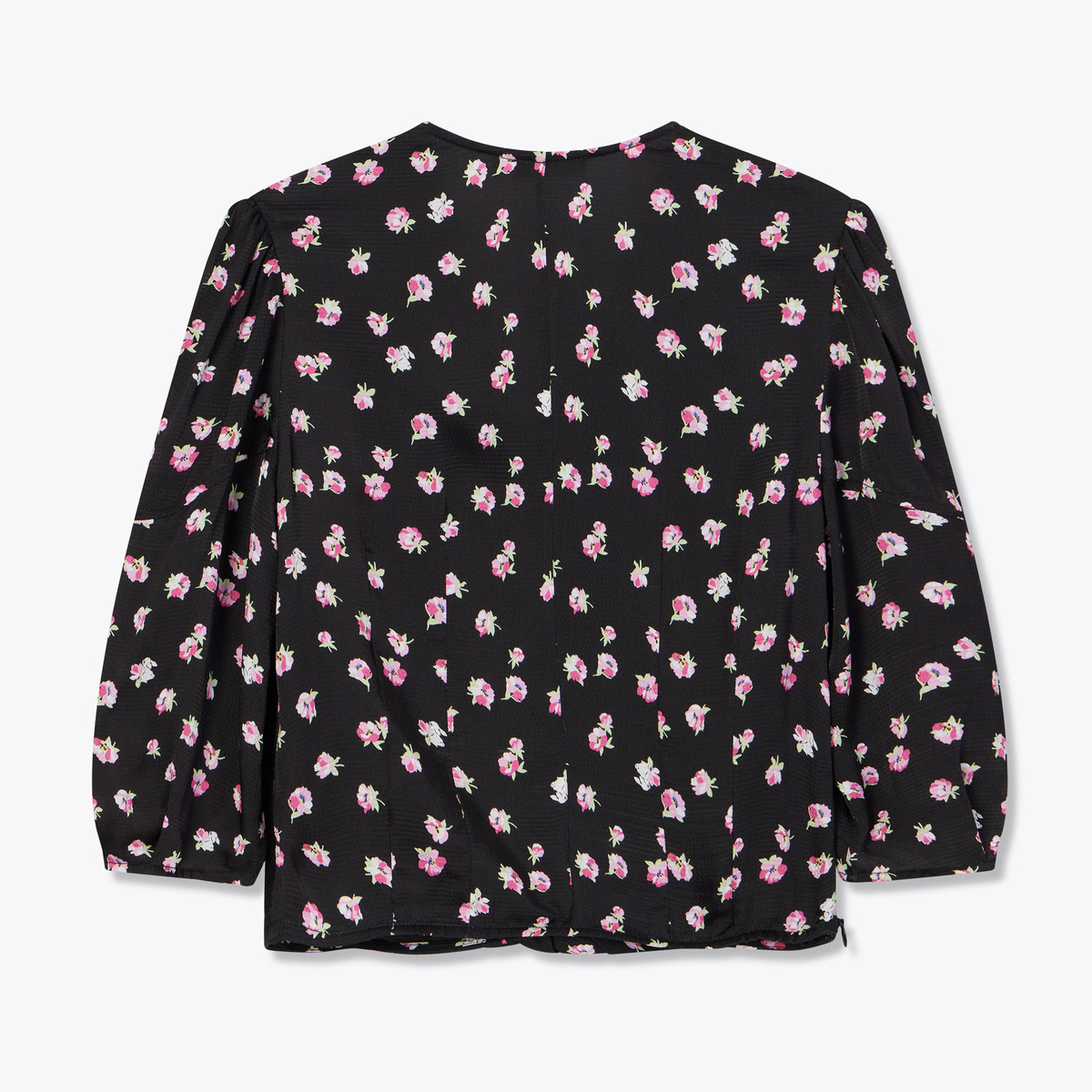 玖姿旗下安娜蔻系列V领优雅法式复古X型雪纺印花长袖上衣女秋季 906892
