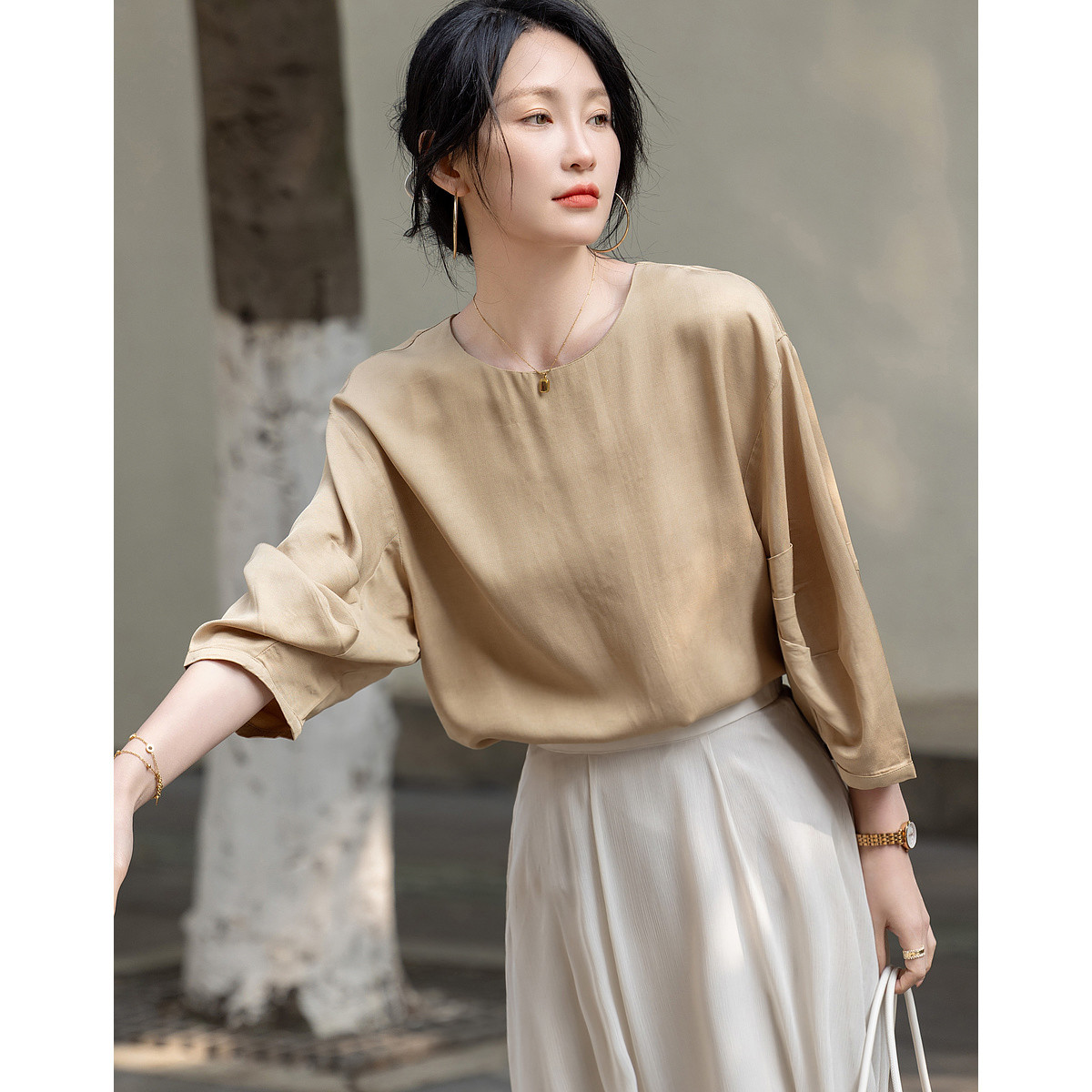 【100%桑蚕丝 纯色百搭】商务通勤长袖真丝衬衫打底衫 206547