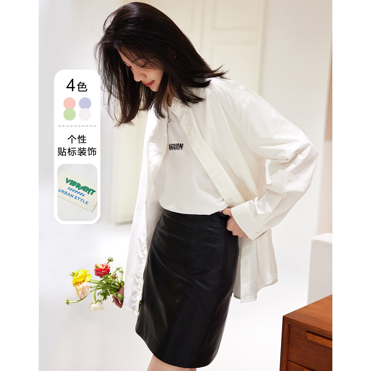 【全棉彩色衬衫】春秋款简约净色定皮标长袖开衫衬衫女 000834