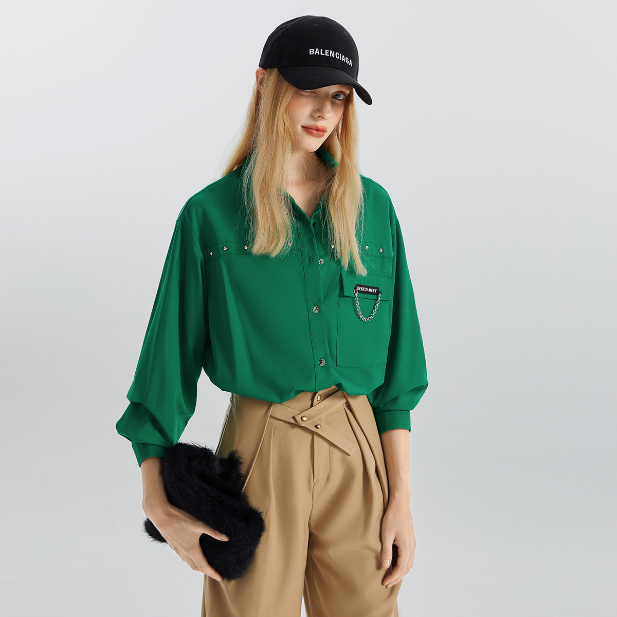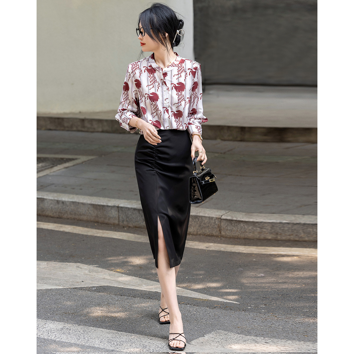 【岁月如歌】春秋法式廓形立领设计感抽褶衬衫九分袖衬衣女上衣 690113