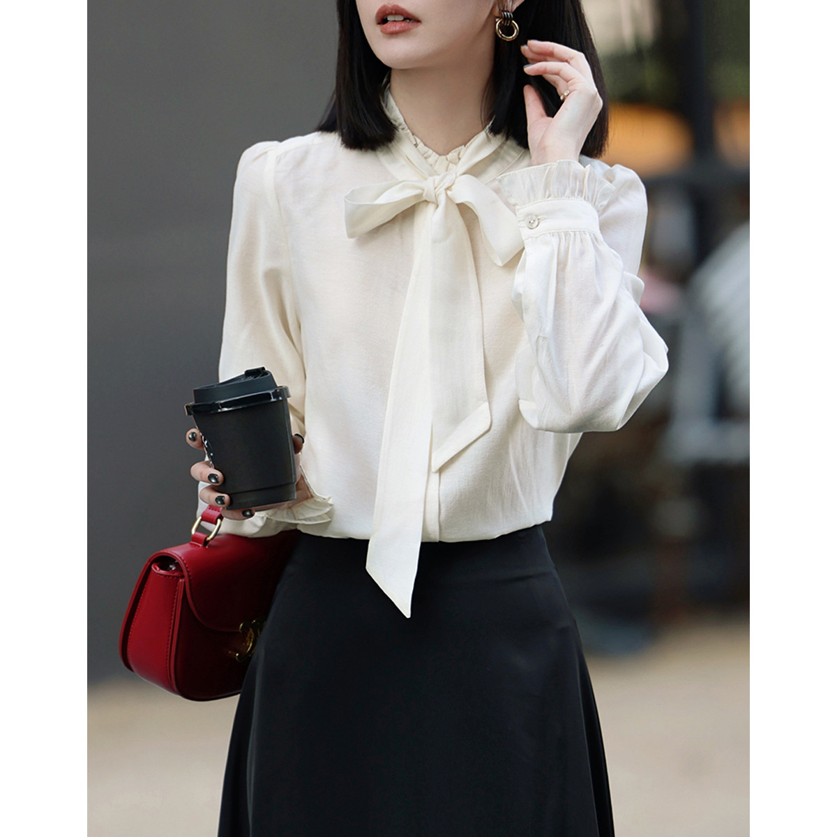 【知性系带衬衫】春秋通勤微弹纽扣衬衣女式上衣 411969