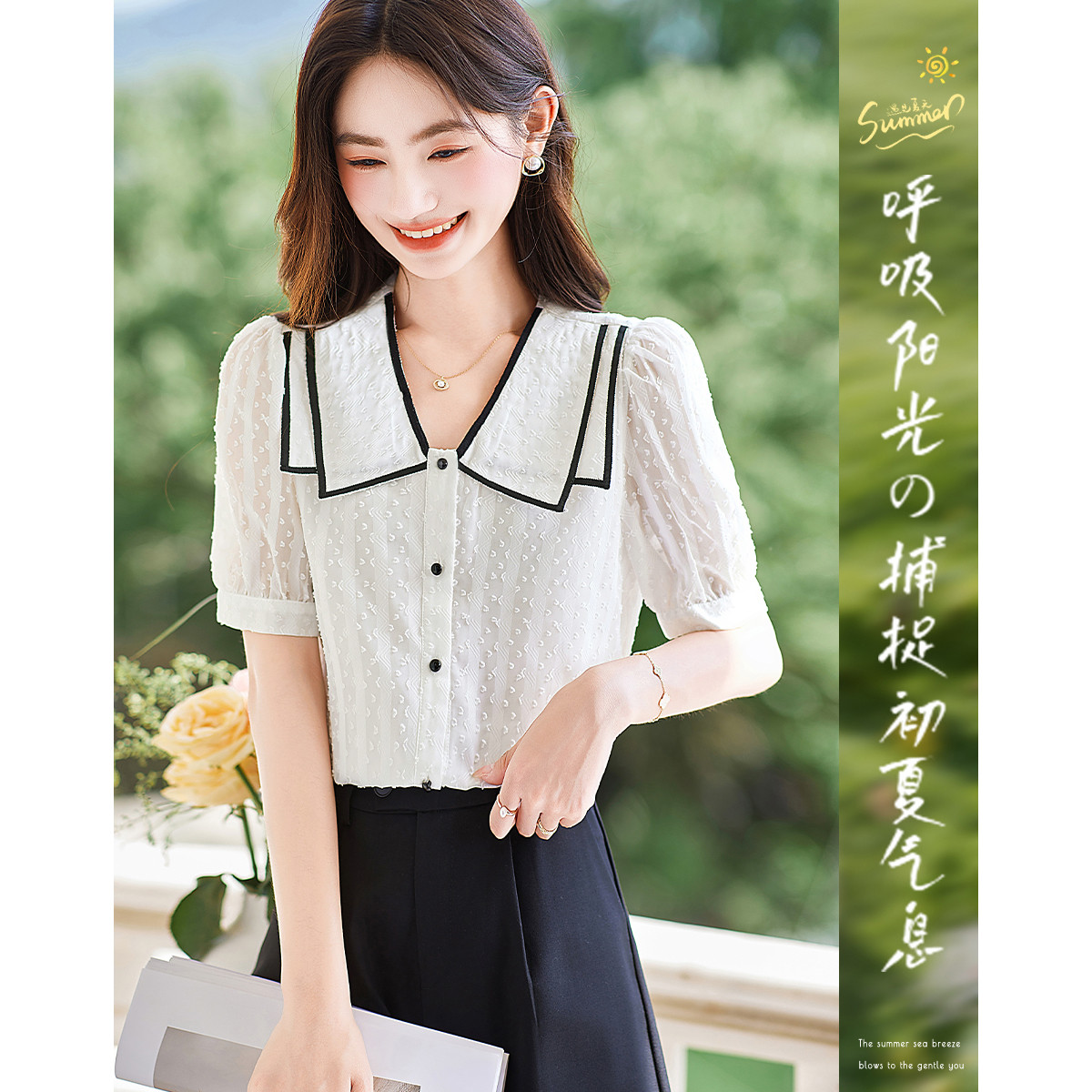 【夏日穿搭】设计感小众时尚气质显瘦小个子女式衬衫 659544