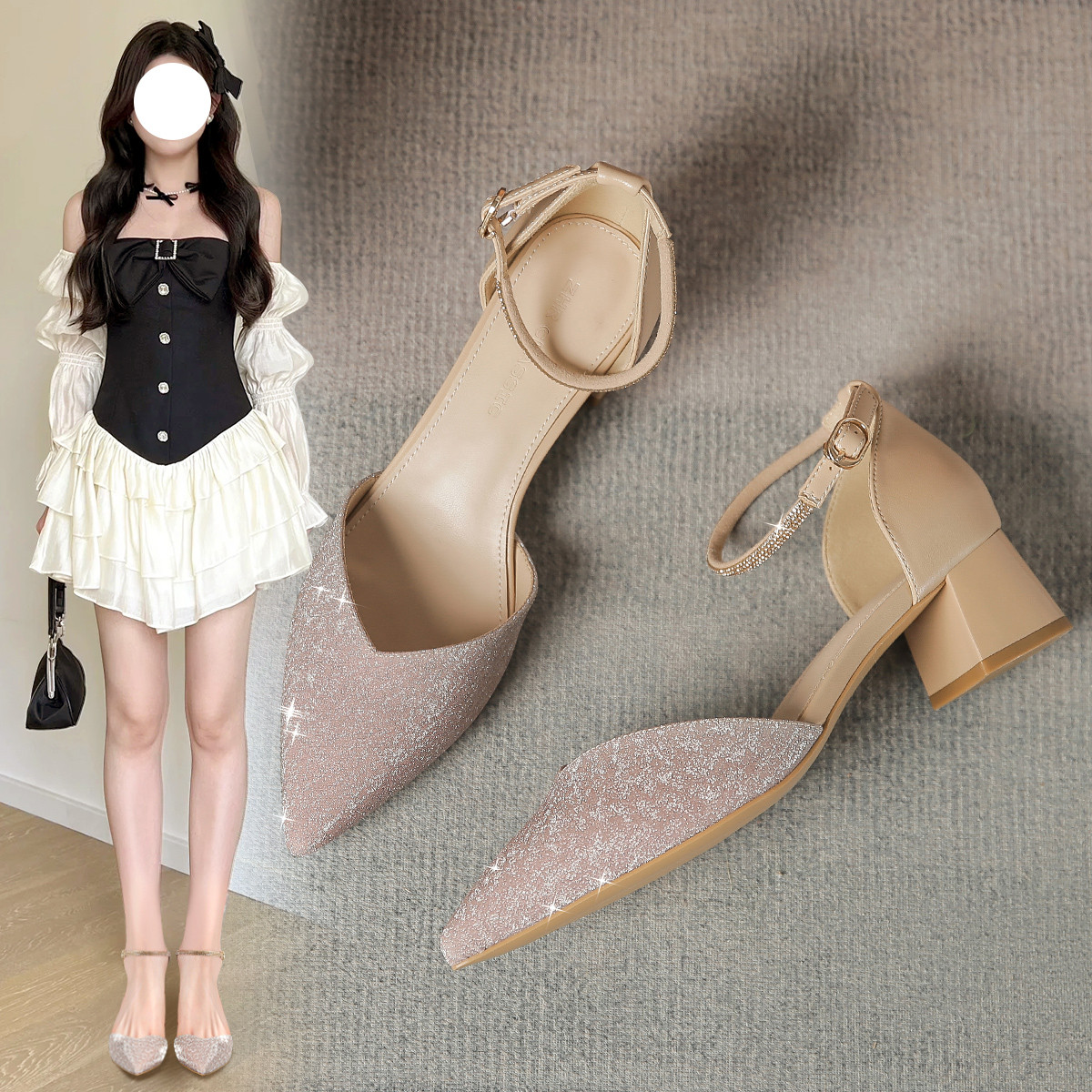 【法式一字带】气质尖头百搭简约凉鞋夏季凉鞋包头粗跟凉鞋女凉鞋 829056